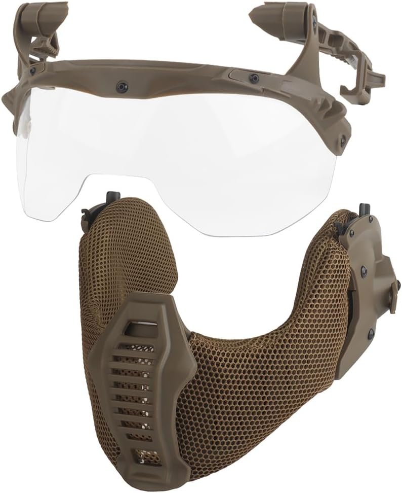 Flip Goggles Ear Cover Mouthguard Half Face Mask Full Protective Hunting Shooting Airsoft Helmet