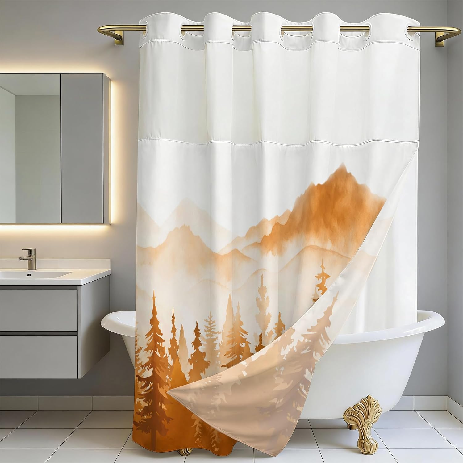 EASY INSTALLATION: The shower curtain is designed with built-in opening rings for quick hanging. No need to remove the shower curtain rod, easy to install.