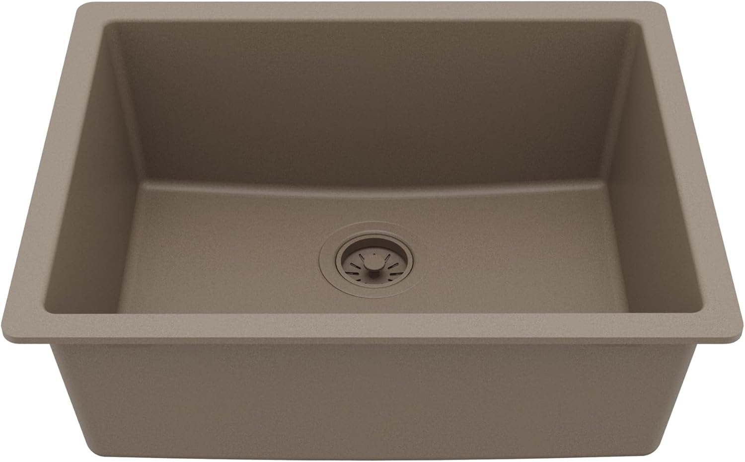 With its spacious single bowl, this design is both practical and elegant. Karran quartz composite sinks are extremely durable and are engineered to stand up to the toughest daily kitchen tasks. This undermount design is available in a selection of 6 rich color choices to compliment any décor.Features & BenefitsDesigned for installation as an undermount sink in granite, quartz, and solid surface countertops Made from 80% natural quartz crystals and pure acrylic resin Heat resistant up to 535°F and can withstand rapid temperature changes from hot and cold water Durable quartz composite material is non-porous, prohibiting food built up Smooth, non-porous material means food residue won't stick or stain the sink's surface Extremely stain, scratch, abrasion, and impact resistant Quartz material absorbs vibration and minimizes noise when in use Natural quartz combined with pure acrylic resins provides deep, rich colors with a choice of 6 to choose from, and stabilization to keep those colors looking like new for years Regular cleaning is simple with just a cloth and soapy water Rear drain location leaves more storage room in your cabinet below and the 9” deep bowl provides plenty of room to accommodate all your cookware SpecificationsSeries: Quartz QU Series Bowl configuration: Single bowl Overall sink length (side to side): 24-3/8” Overall sink width (front to back): 19-1/8" Inside bowl dimensions: 22” x 16-3/4” x 9” Minimum cabinet size required: 27" sink base cabinet Drain opening size: 3-1/2” Compatible with most garbage disposals Approximate Weight: 29lbs Certifications: cUPC certified Accessories included with sink: Template and clips