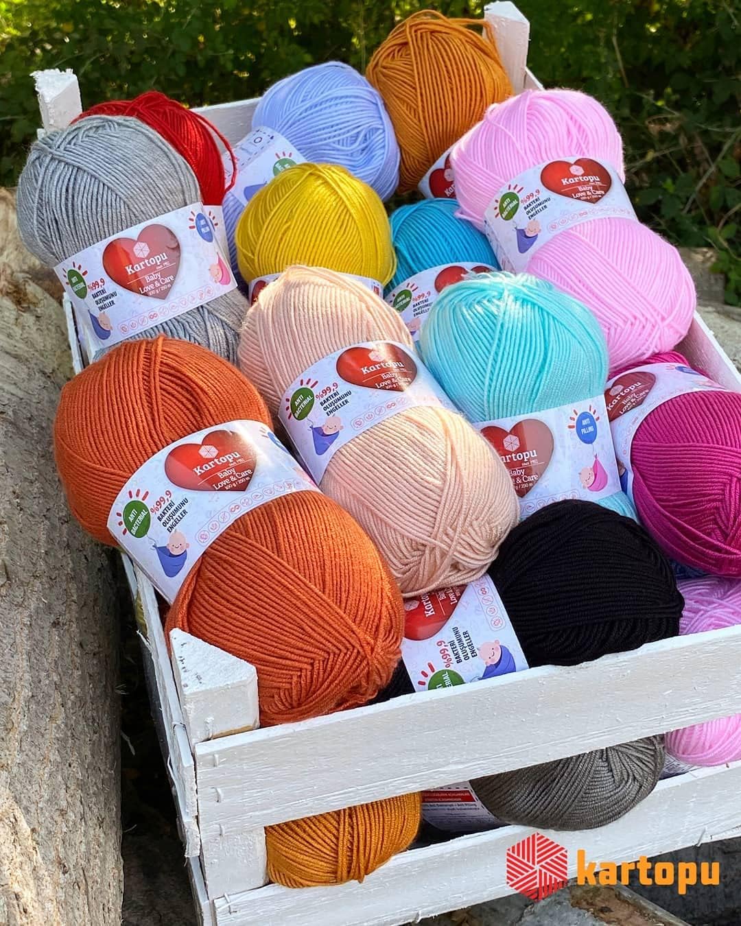 With its gorgeous bright colors, this yarn is perfect for your unlimited imagination. Besides, the anti-pilling (low-pilling) feature of Kartopu Love & Care helps your workpieces last even longer. It is suitable for babies' garments and blankets.