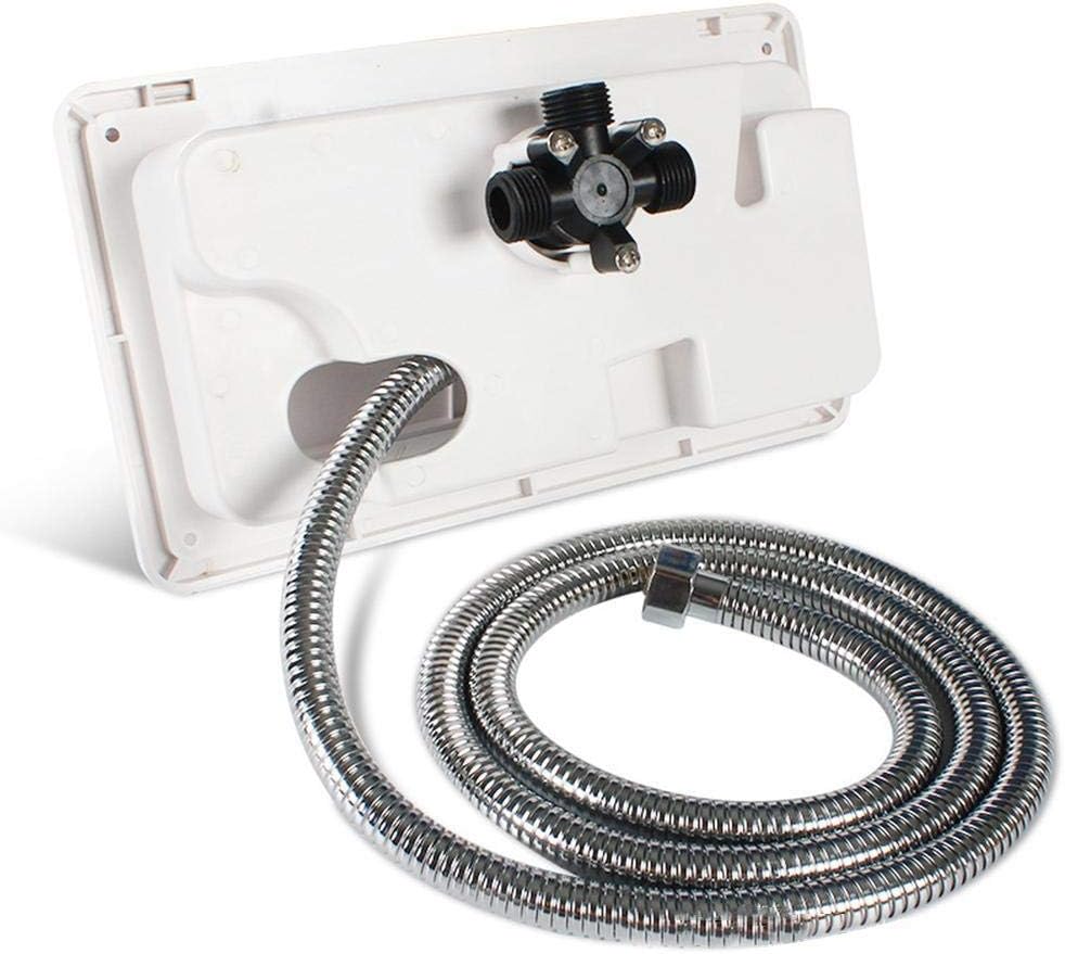 [Complete Shower Accessories] This comprehensive kit includes a shower faucet, valve, hose, shower wand, and a single button handle for secure locking. everything you need for a functional and convenient outdoor shower experience is included in one package. [ Material] Crafted from premium nylon, this outdoor rv shower box kit is lightweight yet incredibly durable. designed to withstand harsh outdoor conditions, it ensures long lasting performance while being easy to use and maintain. [User Friendly Design] Featuring a straightforward setup and intuitive operation, this shower kit is designed for hassle free use. the ergonomic handle and efficient water control make it a pleasure to use during your outdoor adventures. [Easy Installation] Installing this shower box is a breeze. simply close the water supply valve, drain the pipe, remove the old faucet, and adjust the opening size. secure the box to your rv with mounting screws and connect the water pipe to the faucet connector for immediate use. [Versatile Compatibility] Perfectly suited for travel trailers, rvs, vehicles, and mobile homes, this shower kit boasts a and moderate appearance. its universal design ensures seamless integration with various outdoor living setups. Spec: Material: Nylon Color: Black/white (optional) Dimensions: 267 x 157 x 107 mm Hole size: 231 x 118mm Package List: 1 x shower box