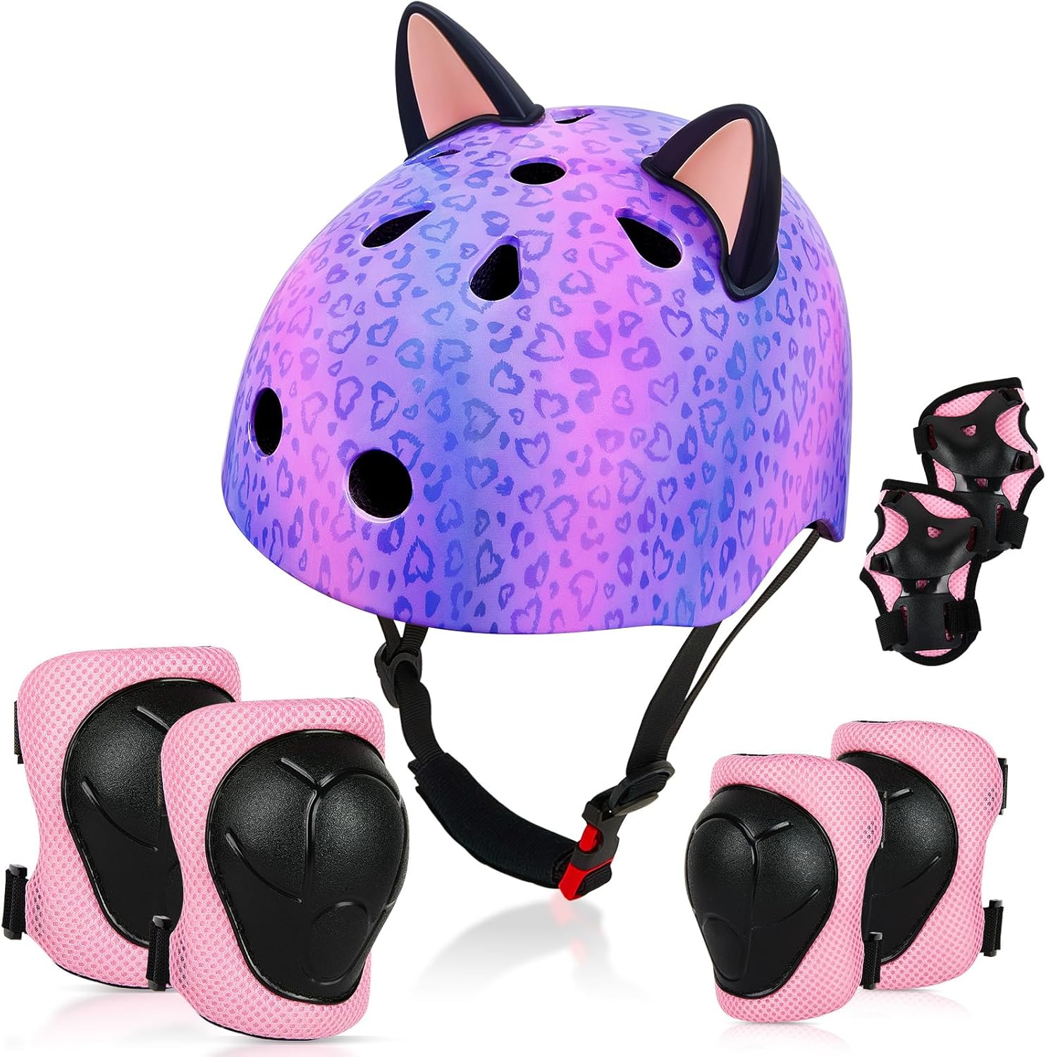 Brand : FIODAY Product Name: Kids Bike Helmet Knee Pads and Elbow Pads Set Wrist Guards Protective Gear Set Girls Bike Helmet Adjustable with DIY Cat Ears Skateboard Helmet for Kids 5 8 14 Years Scooter Skating Cycling