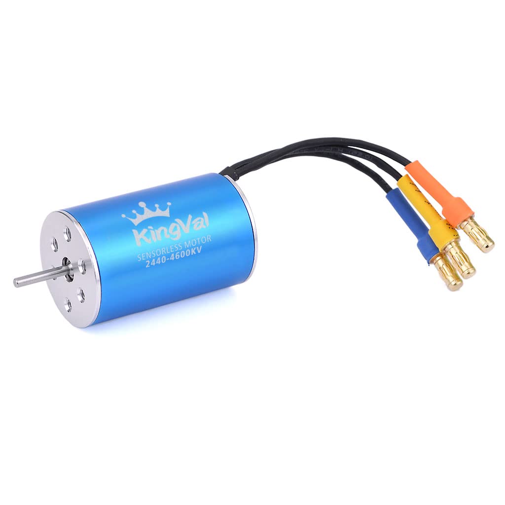 Features:* 4 Poles 12 Slot Hi-torque Motor Design* CNC Machined 6061 T6 Billet Aluminum Heatsink Can* High Purity Copper Windings Maximizes Efficiency* High RPM ABEC5 Oversized Bearings* Universal fit, fits all 1/8 1/10 Brushless cars-multi-mounting system for M3 screws* Precision Balanced Rotor, Smoothness for best reliability and maximum RPM* Stator - Super Thin (0.35mm) Laminations* Removable/Replaceable Rotor* Precision Engineered for Maximum Energy ConversionSpecification:Brand: KingValProduct: 3670 Sensorless MotorMotor Size: ø36x70mmKV(RPM/Volt): 2150Max Voltage: <23VMax Amps: 70AIO: 3.0AResistance: 0.0121Rotor Poles: 4Max RPM: 50000Watts: 1600Shaft: ø5mmLength of extend shaft: 17mmConnector: 4.0mm goldN.W: 275gPackage List:1 x 3670 Sensorless Motor1 x Manual