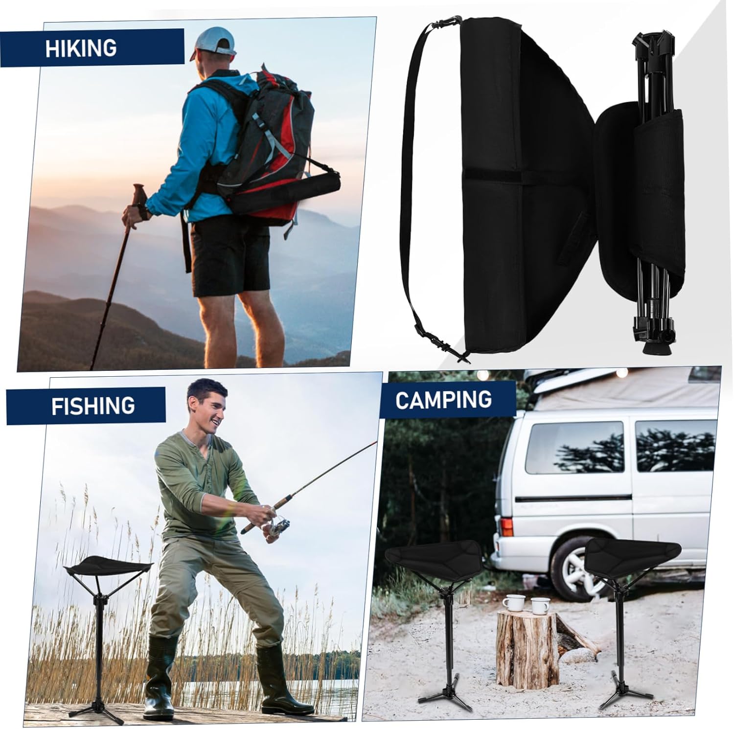 Package List 1 x folding stool Features -Stable support: The tripod structure of this foldable stool provides stability on diverse roads, making it a dependable seat whether on uneven hills or roadsides folding stools. -Flexible height settings: Boasting an adjustable design, this portable folding stool lets you adjust the seat height to your preference and utmost comfort foldable chairs. -Size: 70.00X33.00X28.00cm/27.51X12.97X11.00in foldable stools for adults -Portable and lightweight: The folding chair with a large load-bearing capacity is effortless to assemble and use, simplifying transportation and storage folding chairs. -Color:Black Folding Chair -Versatile use: Suitable for hiking, camping, fishing or even queue standing, this folding stool for outside is a versatile seating partner for outdoor activities Camping Stool. -Comfortable sitting: The seat of our camping stool is large, breathable and cushioned, providing comfort even during long periods of sitting camping stools for adults. -Material:Aluminium alloy foldable chairGoods Descriptioncollapsable chair Its innovative design folds compactly and adjusts to different heights, ensuring comfort and support.camping stools for adults Crafted from lightweight yet sturdy aluminum alloy, this tripod stool is your ideal gear for hiking, fishing, or even queuing at events.folding chairs Discover the portable seating convenience with our Adjustable Height Folding Stool