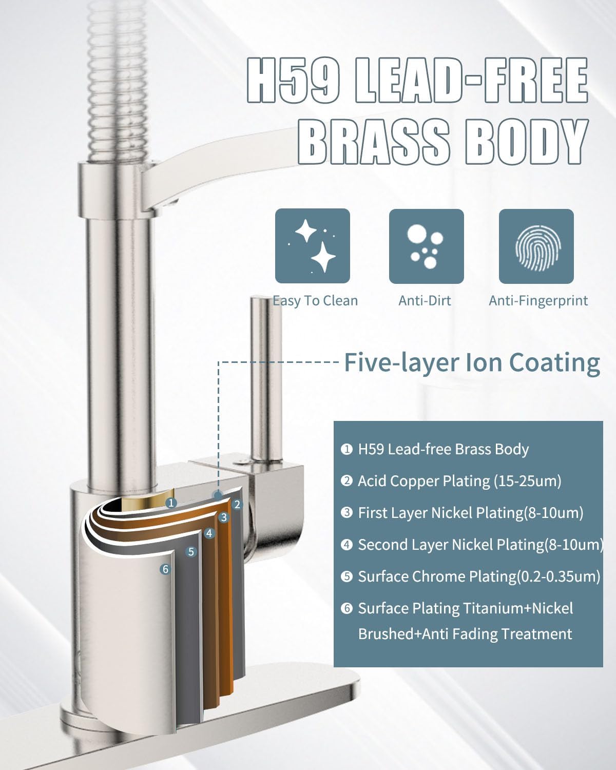 | Additional Features | 360 Swivel, Dual Function Sprayer, Pull Down Sprayer, Tarnish Resistant, Water Saving System |