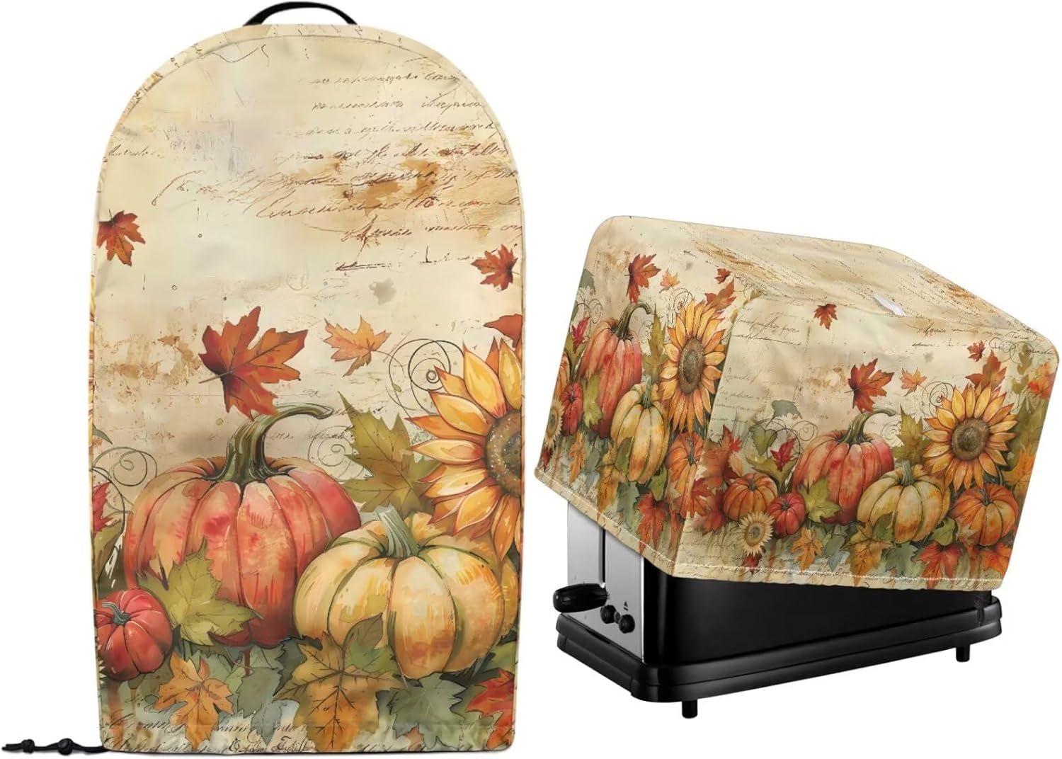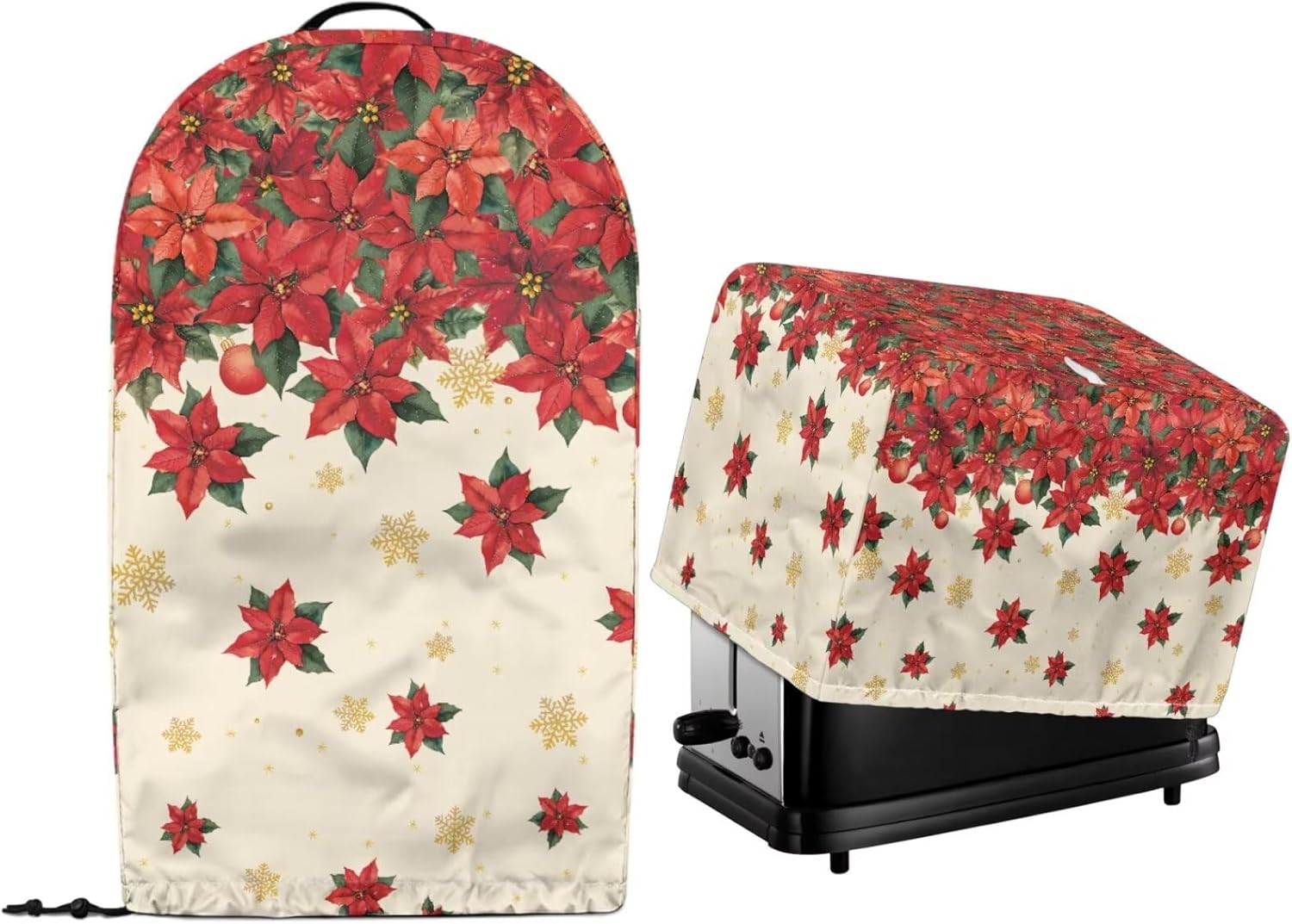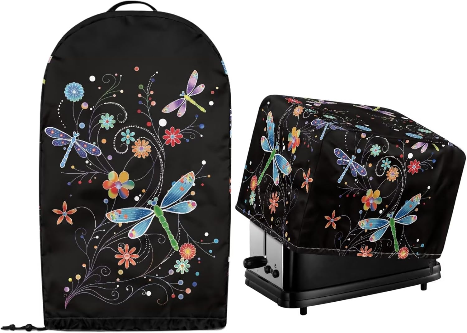 Package Include: 1 piece kitchen blender cover+ 1 piece toaster dust cover Please refer to the size before purchasing Product Name: Blender Cover Material: polyester Size: 9.4'' L x 7.2'' W x 15.9'' H Product Name: Toaster Dust Cover Material: polyester Size: Small- 11.4" L x 7.9" W x 7.5" H; Large- 12.4" L x 10.6" W x 8.2" H Features: -High-quality polyester material can be used for a long time -Dust prevention, liquid splash prevention, and abrasion prevention -Tidy up your kitchen small appliances and keep the stove and table clean -Easy to take, hang, store and clean -Exquisite patterns, elegant and lovely home kitchen decoration -A thoughtful home gift for mother, wife and friends