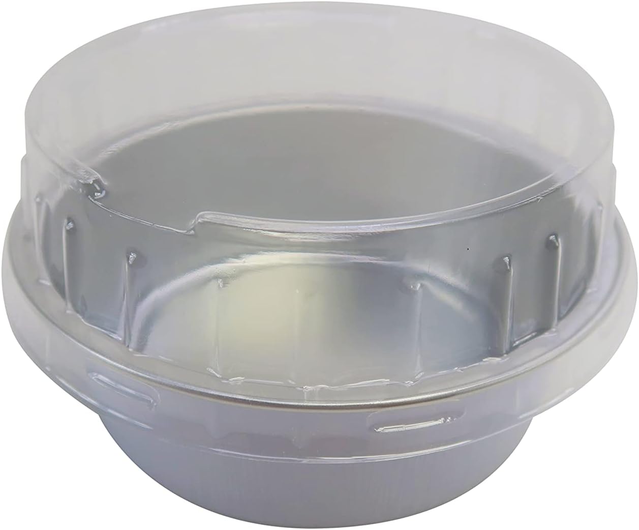 Elevate your dessert presentation with our ๐๐ข๐ญ๐๐ก๐๐ง๐๐๐ง๐๐ disposable red colored aluminum foil ramekins. These dessert cups are perfect for adding a touch of color to any special occasion. These round cups are designed for individual desserts, including creme brulee, flan, mini cakes, and more. The exterior boasts seven bright color options, while the interior maintains a natural aluminum finish. Enjoy the durability of a stronger gauge aluminum cup that's both sturdy and of excellent quality. The vibrant colors of these cups are crafted to withstand the baking or freezing process without fading. It ensures your desserts look as appealing as they taste. Not just for aesthetics, these aluminum foil cups are also safe to torch for crรจme brulee, handling high heat with ease.๐ ๐๐๐ญ๐ฎ๐ซ๐๐ฌ:Made of high-quality aluminum for durabilityDisposable feature for effortless cleanup after useIdeal for baking and serving5-ounce aluminum cupsPerfect for any eventThe stackable lid keeps your products freshEven heat distribution ensures consistent bakingBeautiful colored aluminum baking cups disposableRound shape size adds a stylish touchSet your baking needsEach pack contains 100 items