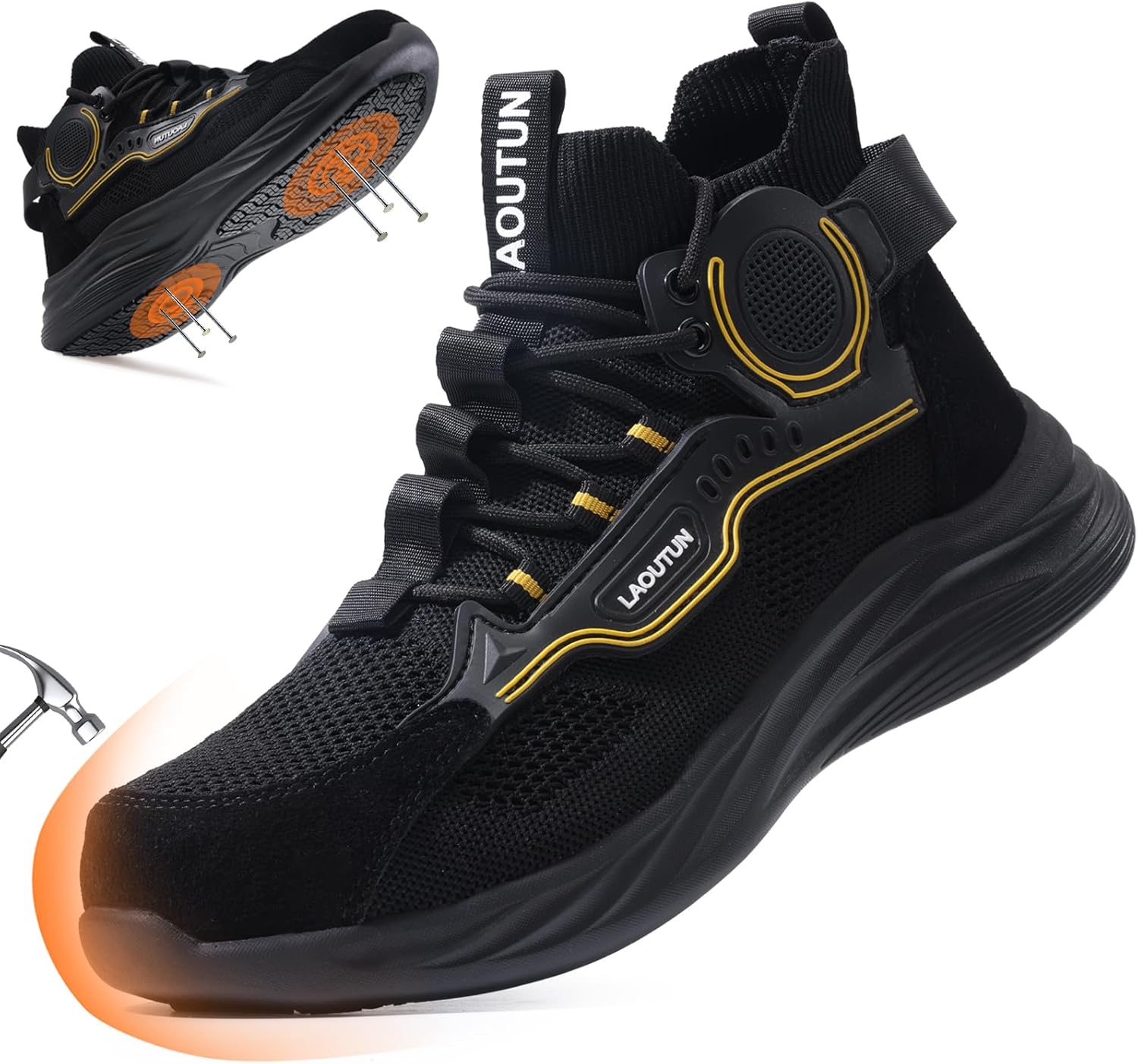 LAoutun men's steel-toe shoes Prioritize your safety Widened steel toe design. Thicker Kevlar midsole Wear-resistant PU (polyurethane) cushioned sole Lightweight and comfortable. Lightweight and comfortable. \"