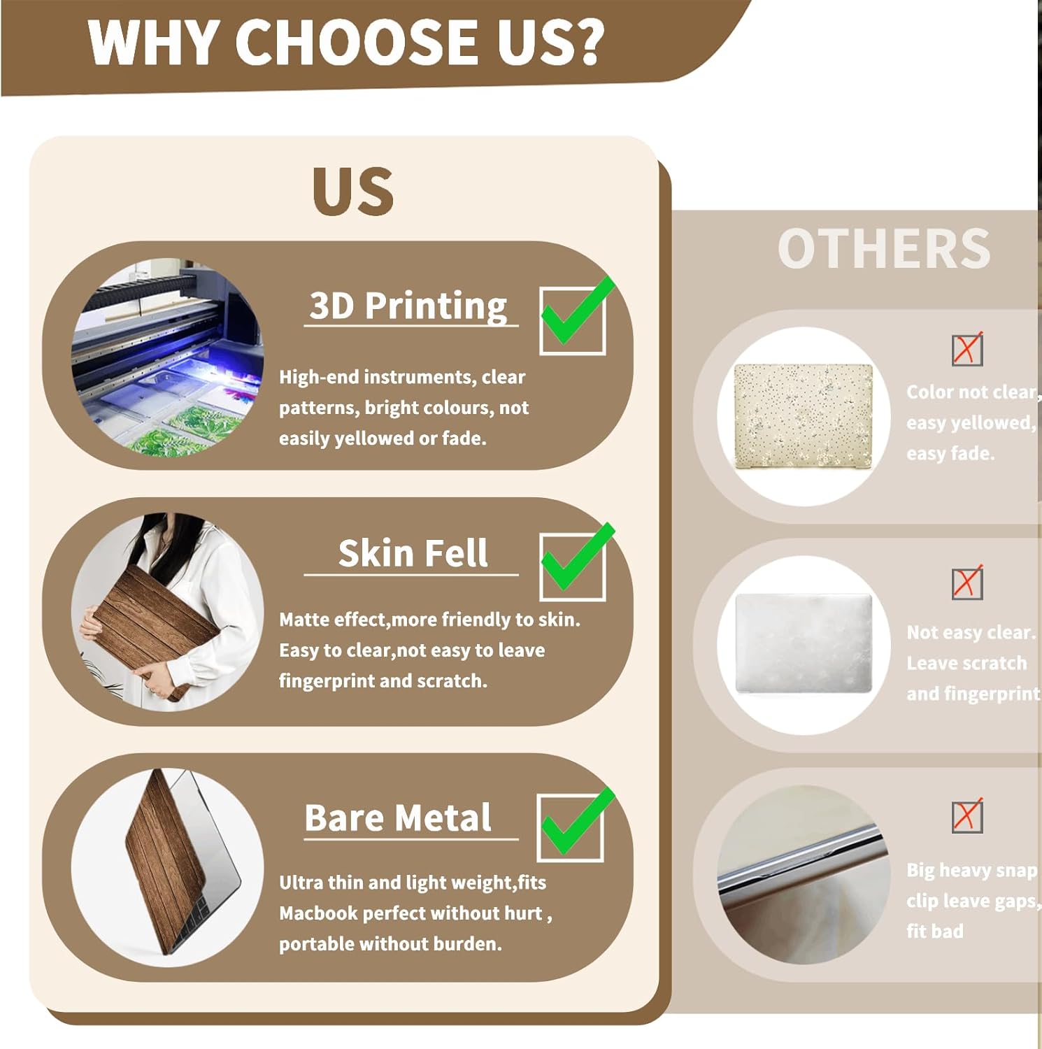 Welcome to HBLX store,we're professional macbook accessories seller. Only Compatible with:Model A3449 M5/A3240 M4/A3113 M3/A2681 M2(New Macbook Air 13" with13.6" Retina Display, Release 2026/2025/2024/2022) NOTE: It's NOT for Any Other Model or Brand. Please kindly check the model number "AXXXX" on the bottom of your for MacBook before purchase Feature: 1. Great for Office Work,Travel,Study,Daily Use.The computer case is made of hard plastic,sturdy and durable,protect your macbook from daily damage.Besides,it's ultrathin and lightweight,won't add too much burden. 2. Perfect Fit.The protective case is molded using actual components and precision-cut,fits your laptop snugly like a second skin. 3. Vibrant Colors and Diverse Styles.Using the latest high-definition printing technology,it's not easy to fade or turn yellow.With such a wide variety of designs, you're sure to find some computer covers that show off your style. 4. No Affect Heat Dissipation.The bottom case has cooling vents and raised anti-slip rubber feet to keep air flow. 5. Easy to Install and Remove.Two-piece design,installation without tools, just align and gently press. Service Any question, please email to us, we will reply you in 24 hours.