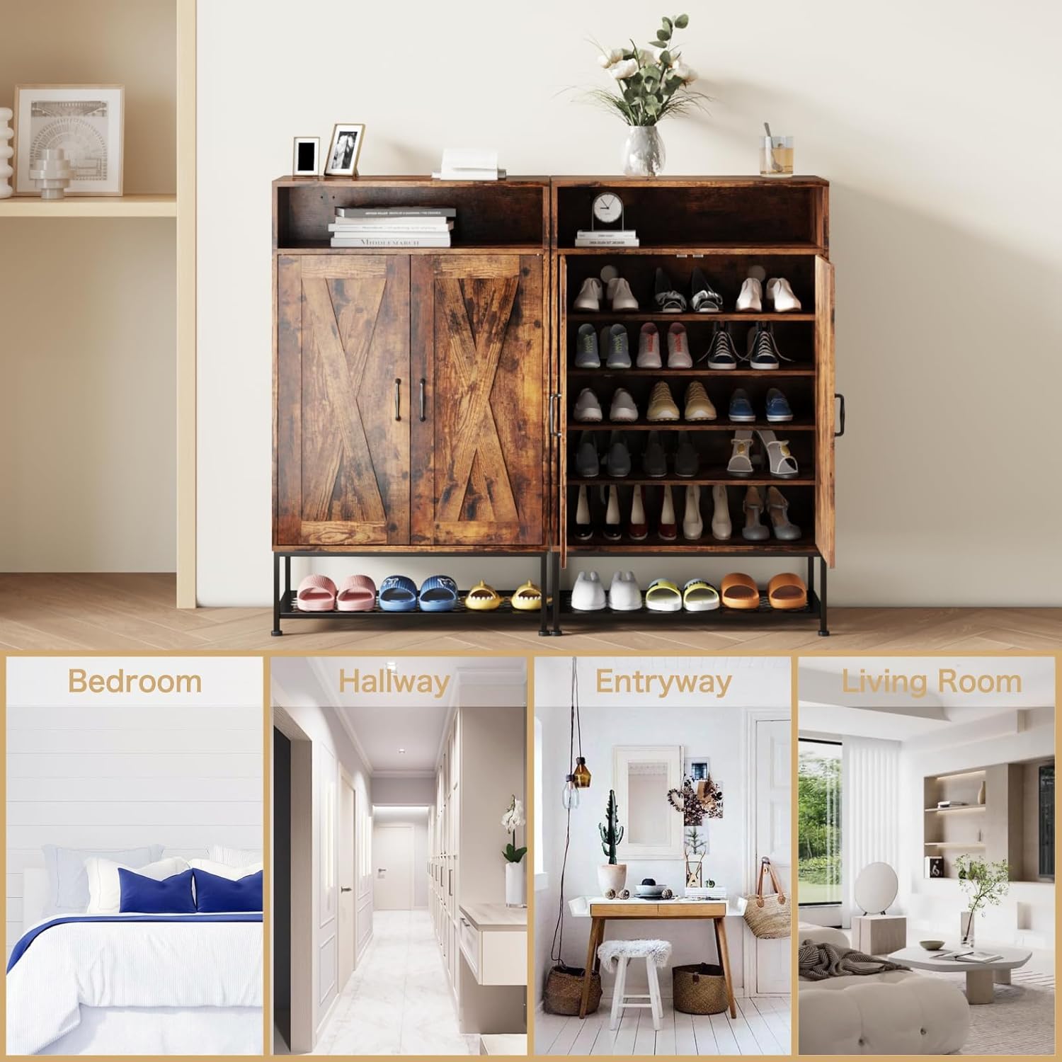 Large 24-Pair Shoe Cabinet with Doors, 7-Tier Wooden Shoe Rack with Removable Shelves, Freestanding Entryway Storage Organizer, Hallway Closet Solution, Rustic Brown
