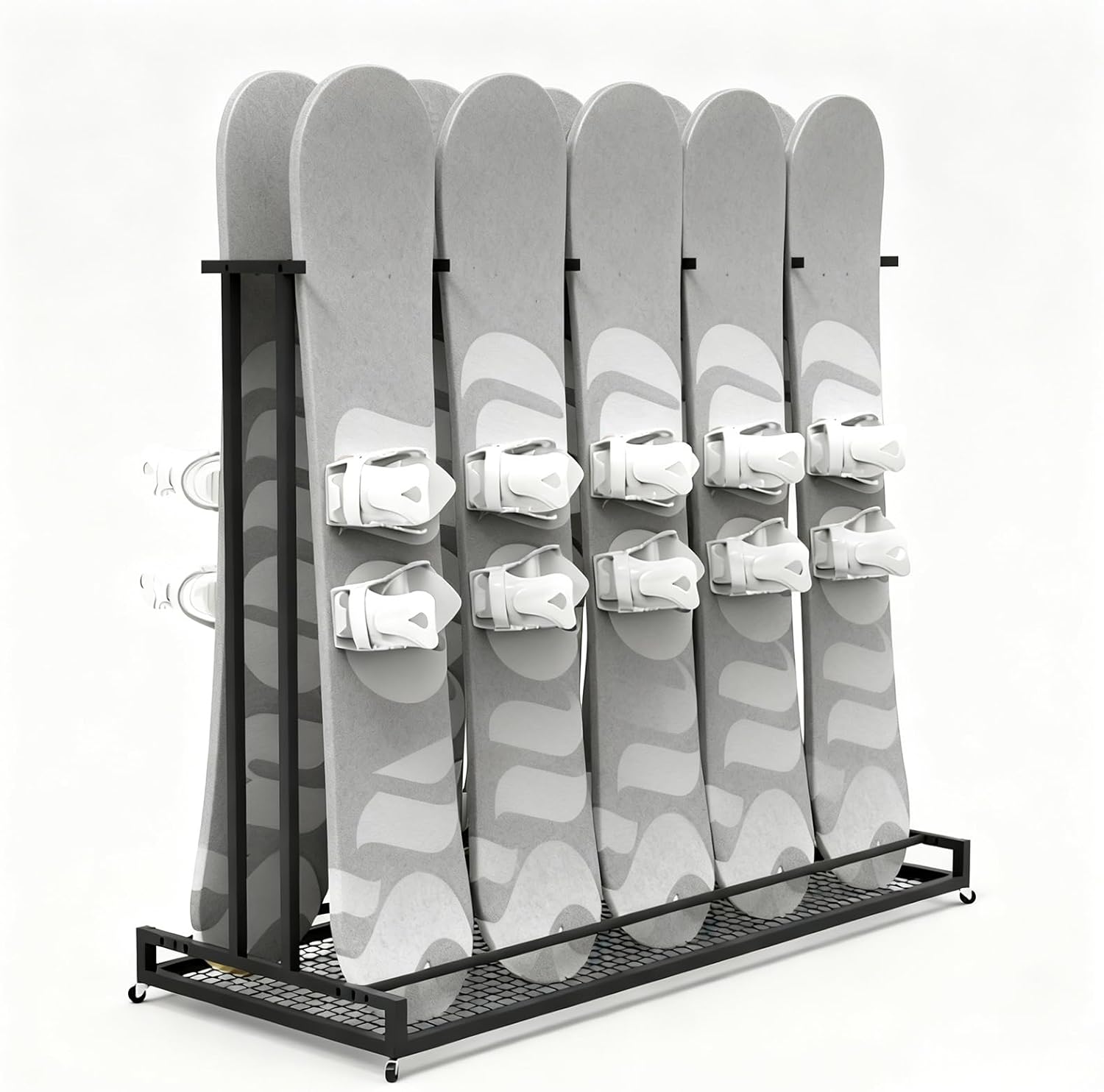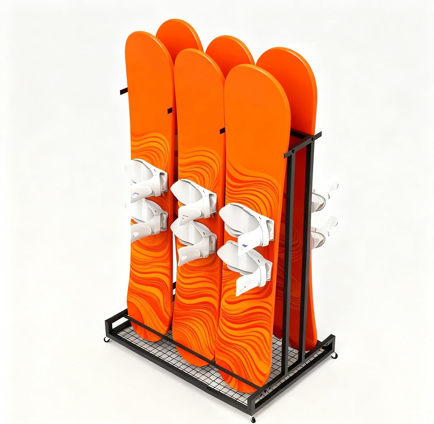 Still worrying about scratches between your precious skis?Are you looking for a great looking storage rack that is sturdy enough for your ski and snowboard equipment?Our storage rack provides dedicated slots for each pair of snowboards, ensuring perfect organization.● Specifications- Material: iron - Color: Black- Height: 120cm (47 1/4")- Width: 62cm (24 3/8"), 93cm (36 5/8"), 124cm (48 7/8"), 155cm (61")- Depth: 60cm (23 5/8")- Whether to Assemble: Yes● Features- The freestanding Individual slots isolate each ski pair to prevent scratches and damage.- Smooth-rolling casters enable effortless mobility even when fully loaded, for easy to move anywhere.- High strength metal iron can be used for a long time.- Space-saving and keeps the floor tidy.- The ski shelf easy to assemble and use. Effortless!- For sport equipment organizer, garage organization.- The stand to maximize floor space while keeping your home tidy.- Clean modern aesthetics complement home interiors beautifully.- Perfect for garages, apartments, cabins, and retail displays.● Package includes:- 1 x Ski Storage Rack (Excludes items shown on pictures)● Note:- Manual measurement, product size and physical may exist 1 ~ 3 cm error.- Products are taken in kind, but due to light, equipment, shooting angle and resolution of the computer, the received physical and photos may be different, in kind prevail.