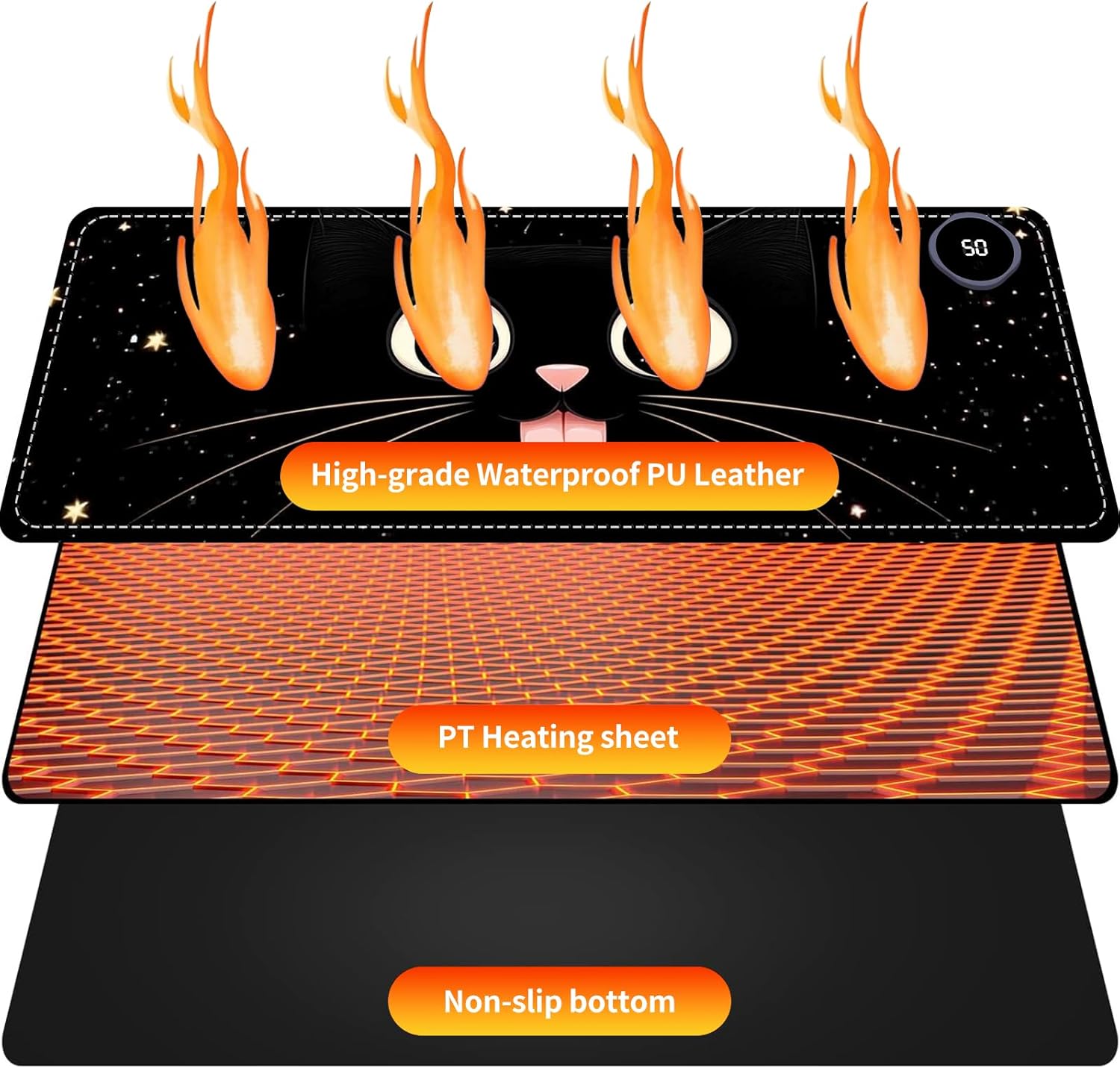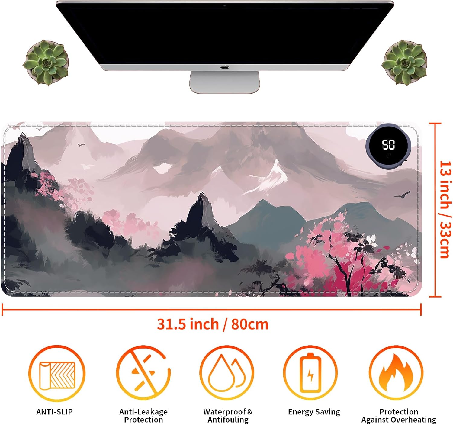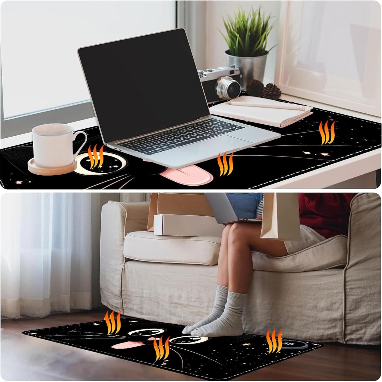 Tired of cold hands at your desk? BFDHGQZC Heated Desk Pad delivers instant, targeted warmth to keep you comfortable and productive all year. This versatile electric heating mat for desk is your ultimate desk hand warmer and desk protector. ✔️ Instant & Even Heat in 20 Seconds Plug in and feel the difference. Our advanced heating technology warms up in under 20 seconds with 3 adjustable levels (40°C-50°C). Enjoy consistent warmth across 95% of the surface—no cold spots. It’s the perfect hand heater for desk for work, gaming, or study. ✔️ Built Safe & Durable for Daily Use Engineered with a 4-layer safety structure: waterproof PU leather, efficient heating film, insulation, and a non-slip rubber base. Features auto shut-off, overheat protection, and spill-proof ease. A reliable heated mouse pad and keyboard mat you can trust. ✔️ Two Perfect Sizes for Any Setup Large (80x33cm): A full heated desk pad accommodating keyboard and mouse, ideal for office or gaming. Square (60x36cm): Ample space as a writing pad or study desk companion, great for crafts or minimalist setups. ✔️ Beyond a Winter Essential A multi-functional cozy warm pad: use as a pet bed mat, foot warmer, or sleek desk mat. It’s the thoughtful Christmas gift and birthday gift for women men who deserve a warmer workspace. 📝 Note: For 110V outlets. Do not place heat-sensitive electronics (like laptops) directly on the heated surface. Package Include: 1 x Warm Desk Pad 1 x Power Cable