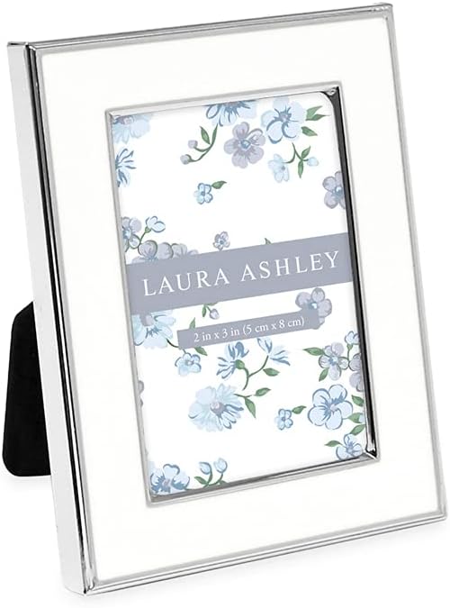 This Laura Ashley silver and black metal enamel frame provides a stylish boost to your home décor while helping transform any room into a more inviting living space. The understated elegance to this classic and contemporary frame is noticeable in the trim, metallic inner and outer edges that surround the enamel border. The chic look of the thin metallic edges reflects the tradition that inspired this modern frame. Light is reflected in a subtle way off this metallic frame and it brightens the tiniest of spaces. The feeling created by seeing your memories displayed in classic, yet modern style may also fill you with a sense of warmth. Feel free to rest this frame either vertically or horizontally on any shelf, mantlepiece, or countertop. The fabric easel of this frame is soft to the touch, yet sturdy. To insert a photo, simply slide the easel down. This frame’s glossy edges give it a clean look that makes it shine as a decorative piece. Gazing at the family portrait shots preserved in this gorgeous frame may bring back cherished memories while the frame accentuates the décor of your interior spaces. Take snapshots of your favorite everyday moments and turn them into timeless treasures in this stunning frame. The alluring quality of this frame make it an ideal choice for use as a display frame at big events like wedding receptions, birthday parties or anniversaries. All eyes will be drawn to the beauty within the frame wherever you place this photo. Use the built-in hooks to mount the frame on a wall and create your own art gallery. A series of black-and-white cityscape shots may transform a blank wall while bringing history to life. Share the joy these decorative frames bring you with your friends, family, and co-workers, as they make a thoughtful gift for the holidays or any season.