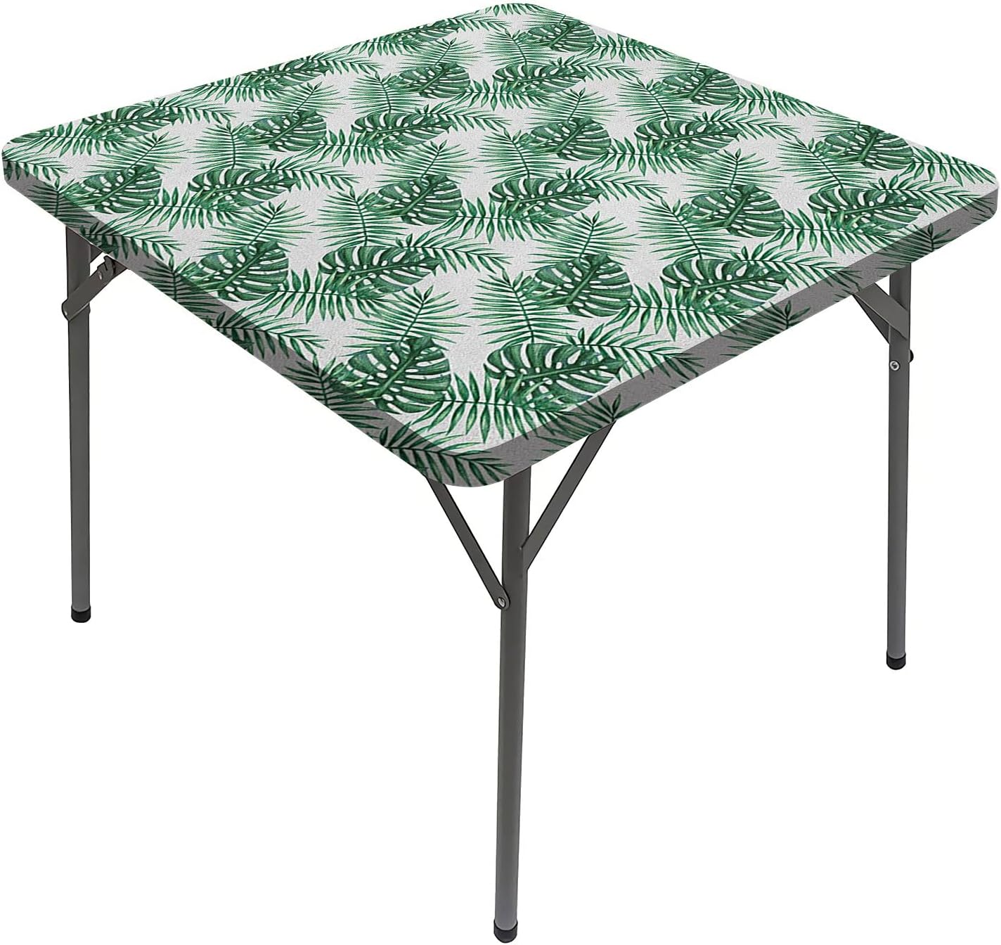 Leaf Table Cover Square, Floral Leaf Patterns Ornamental Lines Elastic Table Cover Square, Fits 44x44 inch Table, for Restaurants Picnic Patio Outdoor Party Decor, Green Soft Green Navy Blue
