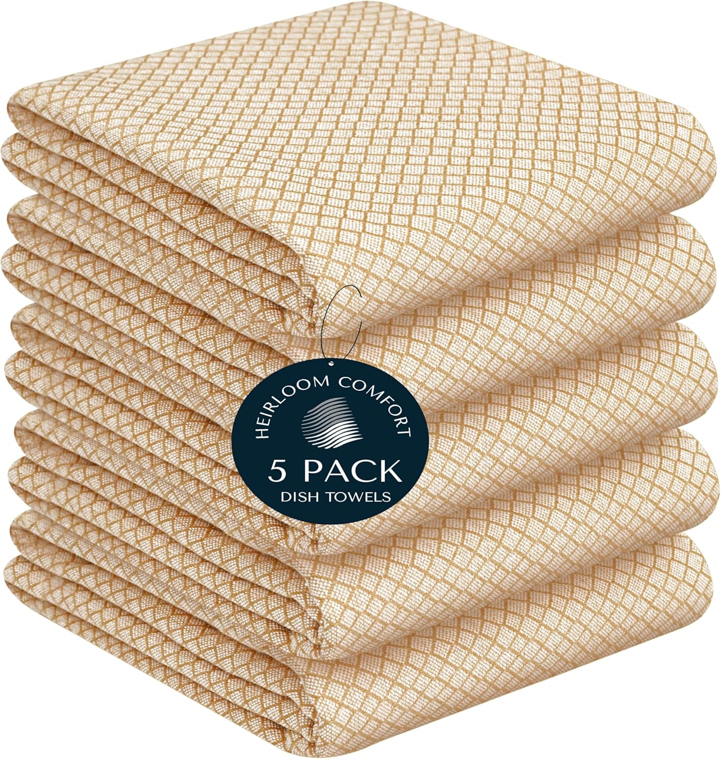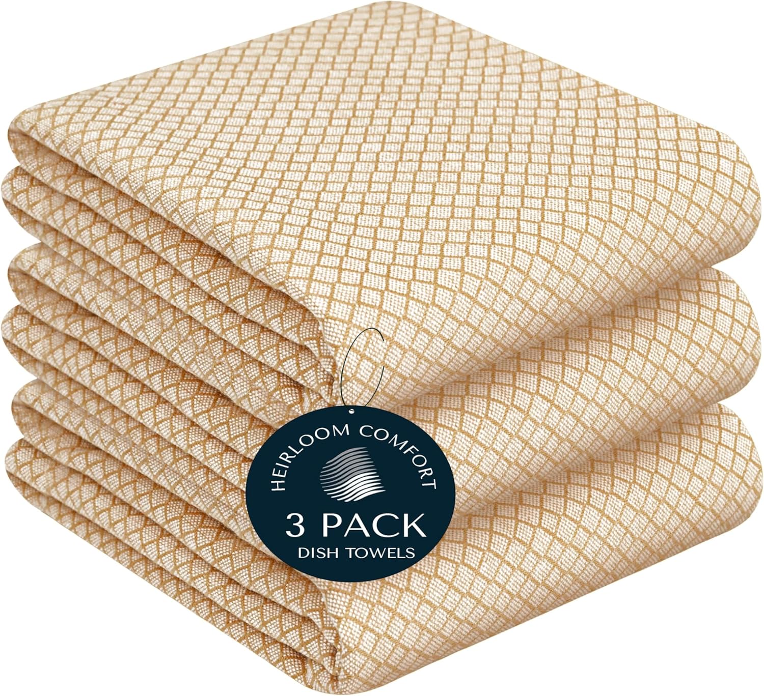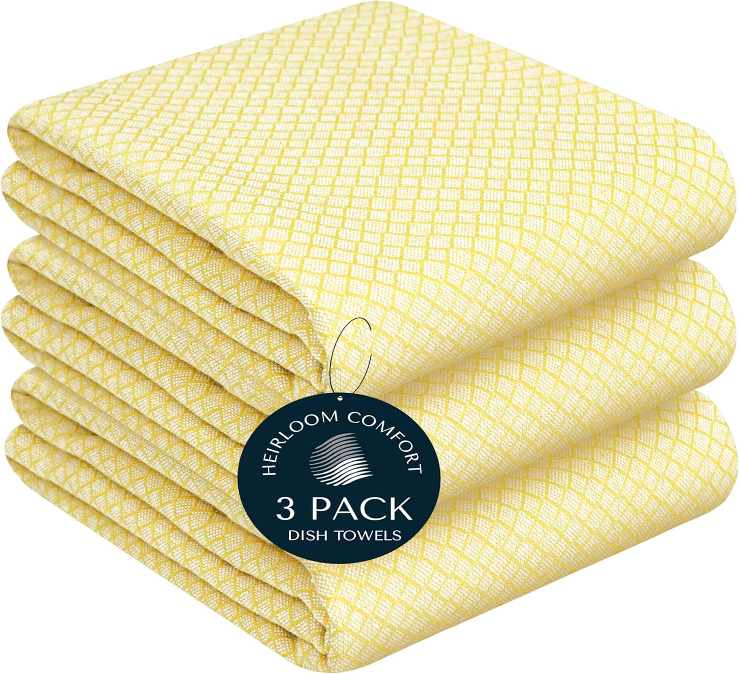 Refresh your kitchen routine with our HEIRLOOM COMFORT honeycomb kitchen towels, available in 12-pack, 5-pack, and 3-pack sets. Each towel measures a generous 16x26 inches and is crafted from 100% cotton, offering a soft touch and high absorbency to handle all your drying and cleaning tasks with ease. The honeycomb weave design enhances absorbent performance and allows for quick drying, making our towels a smart and efficient choice for drying dishes, wiping hands, cleaning surfaces, and handling cookware. Whether you're using them at home or in a restaurant, café, or catering setting, our reusable kitchen towels provide reliable, eco-friendly performance without sacrificing comfort or style. Machine washable and built to last, our towels maintain their shape, softness, and vibrant colors wash after wash. Lightweight and durable, they’re easy to fold and store, and their textured surface helps grip dishes and utensils securely during drying. Available in a variety of modern and classic shades like Mustard Yellow, Burgundy Wine, Brown, Grey, Orange, Indigo Blue, Black, and more, our towels complement any kitchen decor - be it farmhouse, rustic, or contemporary. Add practical elegance to your everyday kitchen tasks with our honeycomb weave cotton towels—your go-to solution for absorbent, fast-drying, and stylish kitchen essentials.
