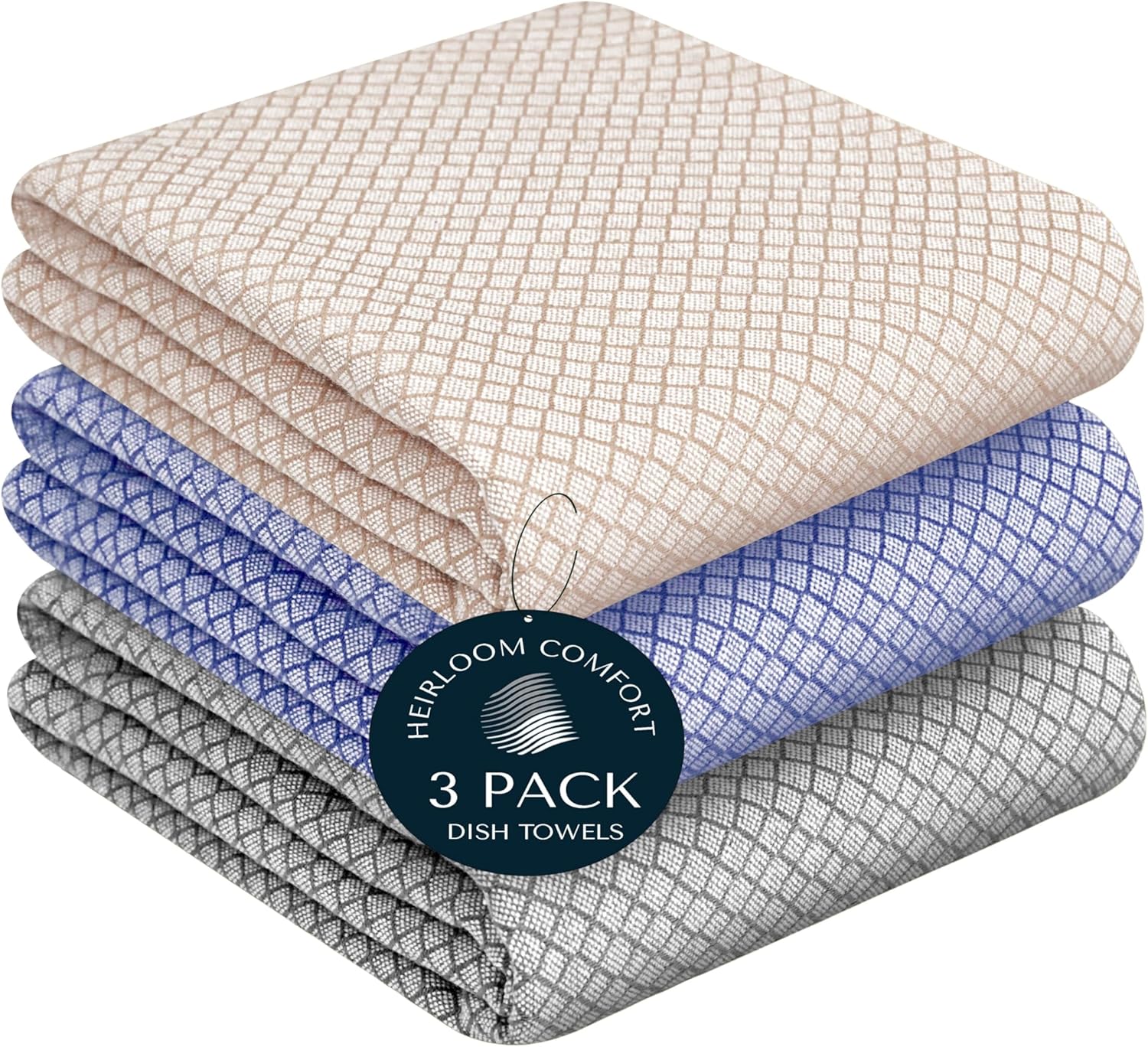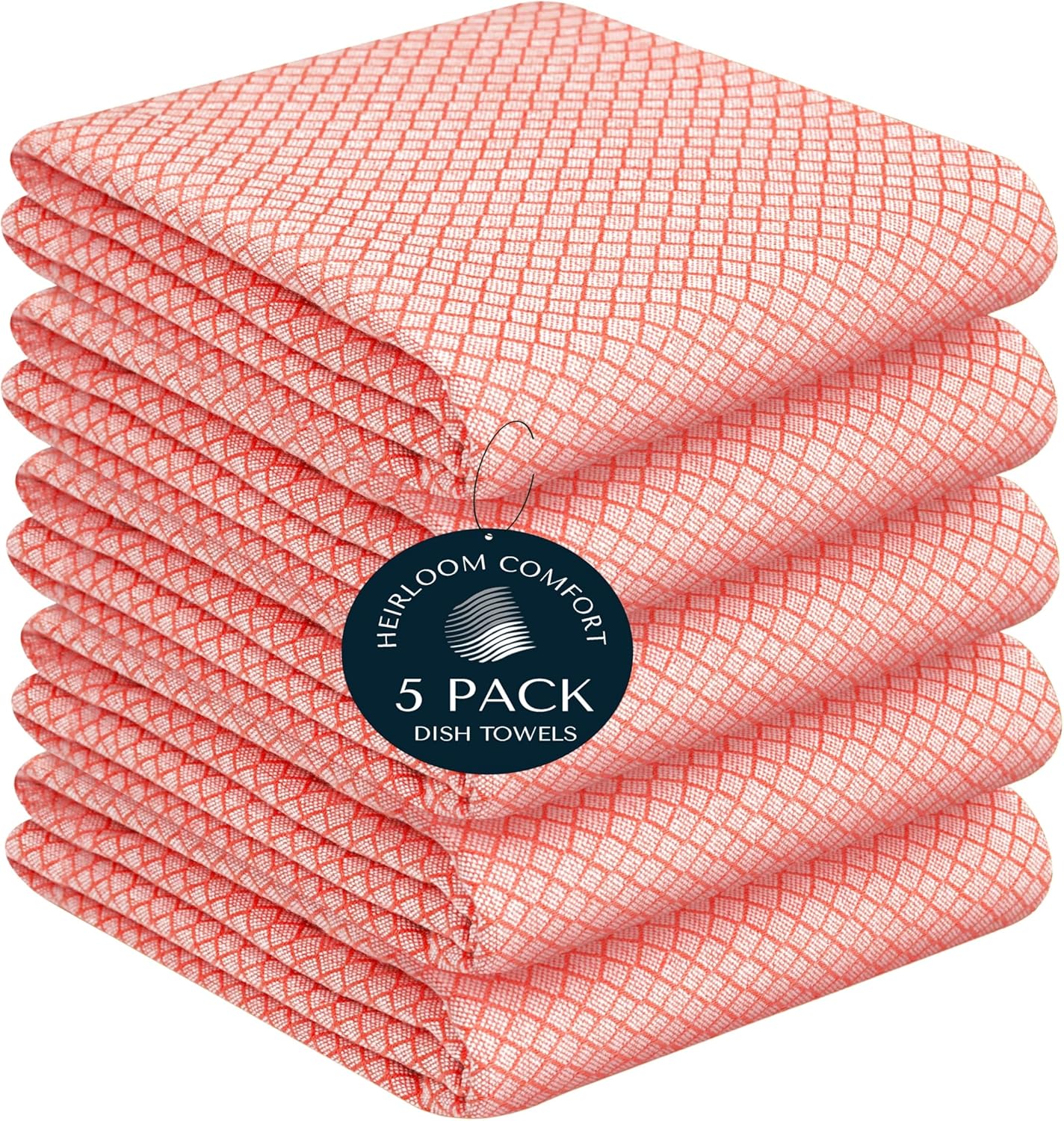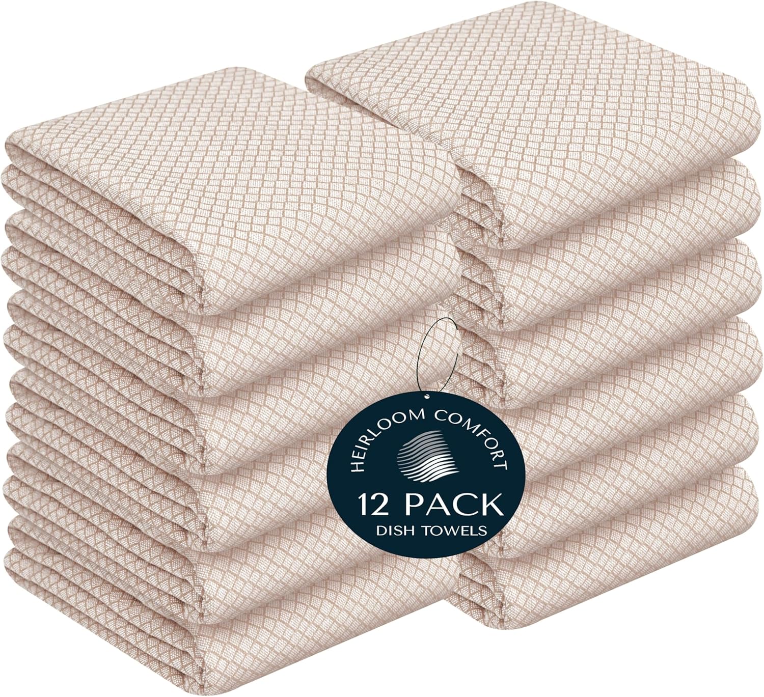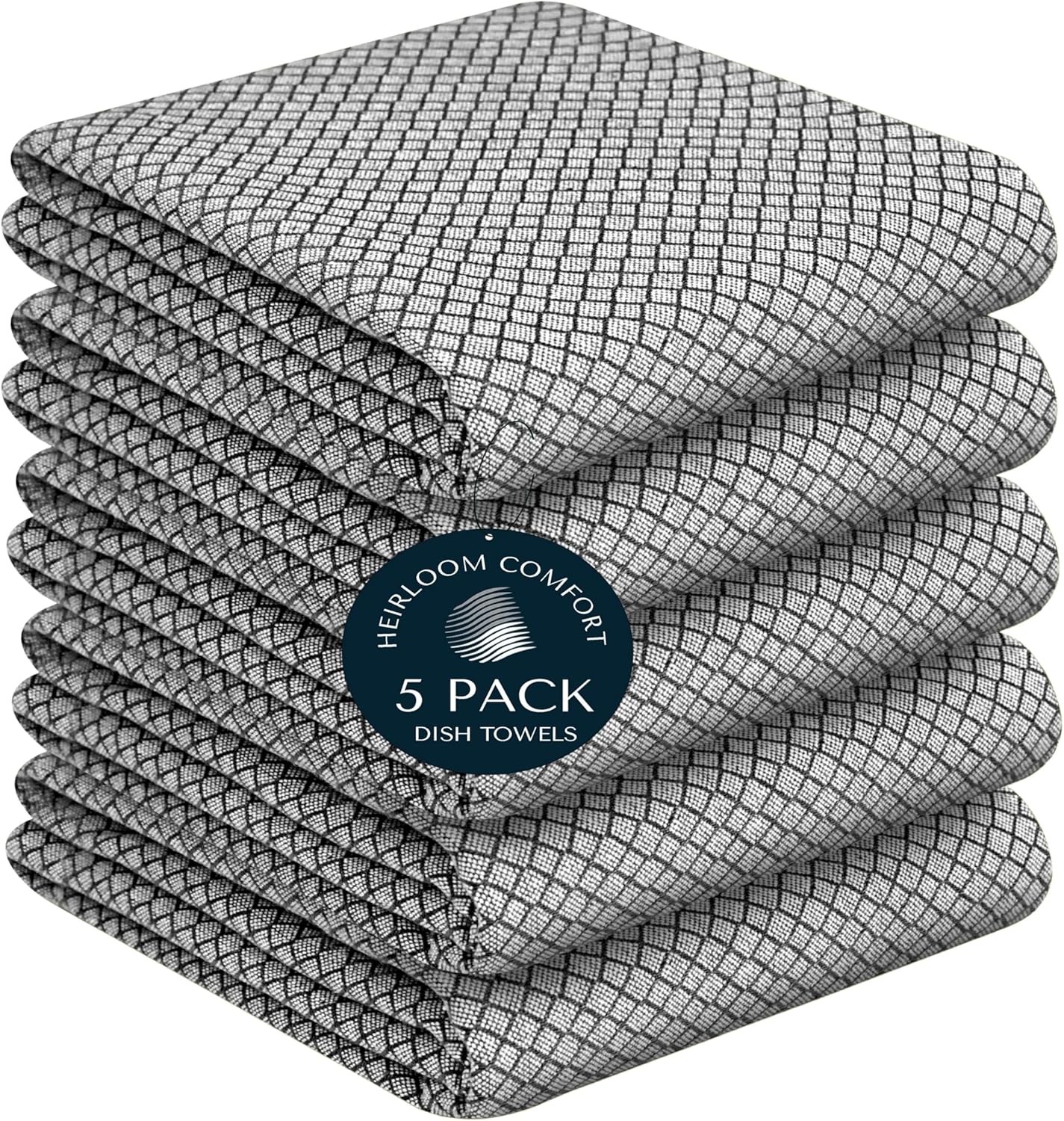 Refresh your kitchen routine with our HEIRLOOM COMFORT honeycomb kitchen towels, available in 12-pack, 5-pack, and 3-pack sets. Each towel measures a generous 16x26 inches and is crafted from 100% cotton, offering a soft touch and high absorbency to handle all your drying and cleaning tasks with ease. The honeycomb weave design enhances absorbent performance and allows for quick drying, making our towels a smart and efficient choice for drying dishes, wiping hands, cleaning surfaces, and handling cookware. Whether you're using them at home or in a restaurant, café, or catering setting, our reusable kitchen towels provide reliable, eco-friendly performance without sacrificing comfort or style. Machine washable and built to last, our towels maintain their shape, softness, and vibrant colors wash after wash. Lightweight and durable, they’re easy to fold and store, and their textured surface helps grip dishes and utensils securely during drying. Available in a variety of modern and classic shades like Mustard Yellow, Burgundy Wine, Brown, Grey, Orange, Indigo Blue, Black, and more, our towels complement any kitchen decor - be it farmhouse, rustic, or contemporary. Add practical elegance to your everyday kitchen tasks with our honeycomb weave cotton towels—your go-to solution for absorbent, fast-drying, and stylish kitchen essentials.