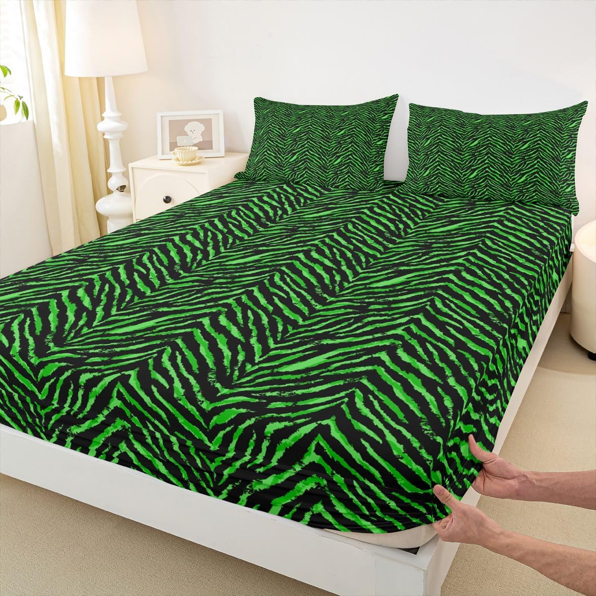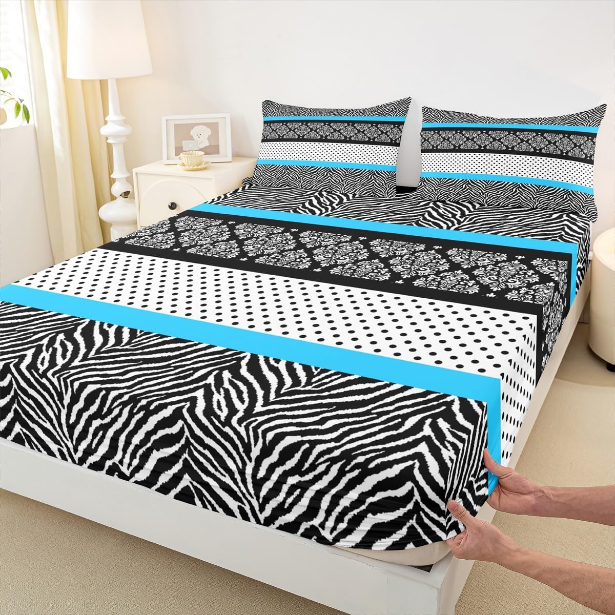 Package Include:1 x fitted sheet,2 x Pillowcases. Fitted sheet set pattern bedding set, simply decorating your rooms any time you want, bringing you fresh feel for year round use. Made from polyester,the sheet set offers long lasting strength,anatural resistance to shrinking and a noticeably soft hand feel. Size Information: Twin size : 1 Fitted Sheet 39"W x 75"L x 16"H ,99 x 190 x 41cm , 1 pillowcase 20" x 30", 51x75cm . Full size : 1 Fitted Sheet 54"W x 75"L x 16"H ,137 x 191x 41cm ,2 pillowcases 20" x 30", 51 x 75cm . Queen size : 1 Fitted Sheet 60"W x 80"L x 16"H ,152 x 203x 41cm ,2 pillowcases 20" x 30", 51 x 75cm . Personalize your bedroom: Beautiful design and colorful print, makes your bedroom unique and brings you a wonderful dream. Washing instructions: Machine wash separately in cold water,hang dry, do not bleach. Occasion: The soft Fitted Sheet bedding sets designed for Children ,Adult, Men, Women, Teens. This Fitted Sheet set is also suitable for full seasons, Spring, Summer, Autumn and Winter.