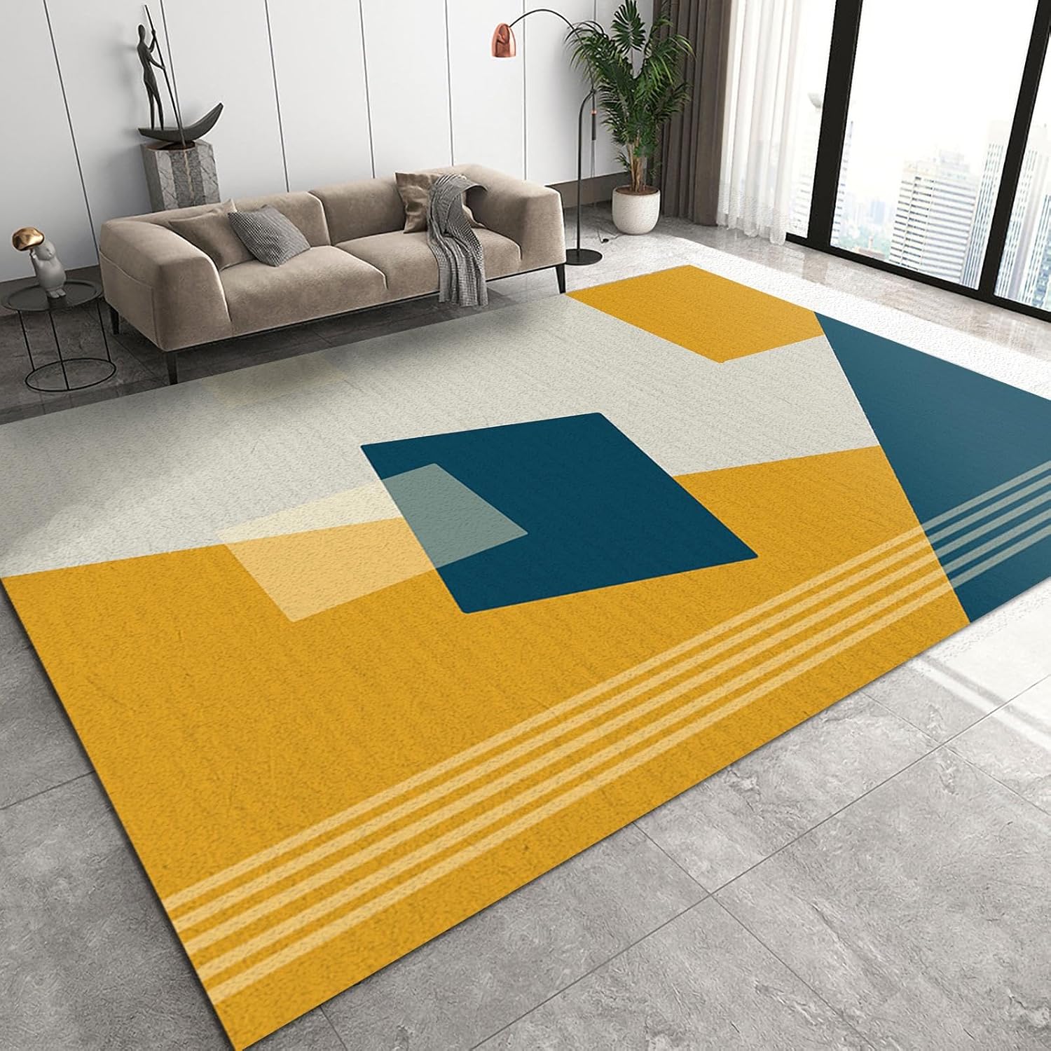 Brighten up your home with art area rug ! Features:Exclusive Design A clever combination of modern area rugs, classic patterns and stylish colors, decorating your home like a painting and adding an artistic atmosphere to your home.Soft Material Natural flannel material is super soft to the touch and fine texture.The low-pile rugs can add warmth to your feet, and reduces the noise when walking and creates a quiet environment for you.Non-slip and Safe The area rug bottom is evenly distributed with non-slip spots to prevent rug from sliding on the floor. It firmly grips the floor and won't hurt the floor or leave scratches on the floor. Pet and kid friendly.Lasting DurableLiving room carpet adopts spray printing technology to achieve clear patterns, bright colors and long-lasting effects.Reinforced overlock at the edges of the low-pile rug for virtually no shedding.Wide UseBeautifully printed Carpets are very suitable for home decoration, can be used in bedroom, living room, nursery room, dormitory. Festival decoration, for Christmas, Halloween, Thanksgiving and New Year, bring festive vibes to your home.Cleans EasilyUse vacuum cleaner, broom, or wipe for daily cleaning to prevent dust and crumbs from setting into the fibers.Washer and dryer are also available for a deeper clean. It is better to wash in cold water and not to add bleach.Material: Flannel & Sponge layer & Anti-slip dots bottomSize and Weight:2' x 3' /1.23 lb3' x 4' / 2.46 lb3' x 5' / 2.97 lb4' x 5' / 4.3 lb4' x 6'/4.73 lb5' x 6' / 5.0 lb5' x 7' / 7.26 lb5' x 8'/7.7 lb6' x 8' / 9.46 lb6' x 9'/9.6 lbPacking List : Carpet x1Warm Tips:Carpet is vacuum-packed separately, but it will be restored in 3-5 day, which will not affect the use. Because of different measuring tools, there may be a deviation of 2%.