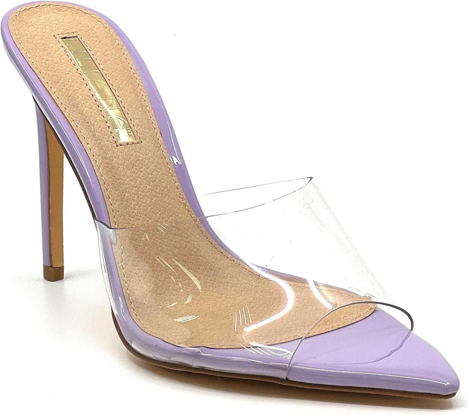 Women's Clear Heeled Sandals Transparent Stiletto Mules Open Toe Slip on Dress Shoes