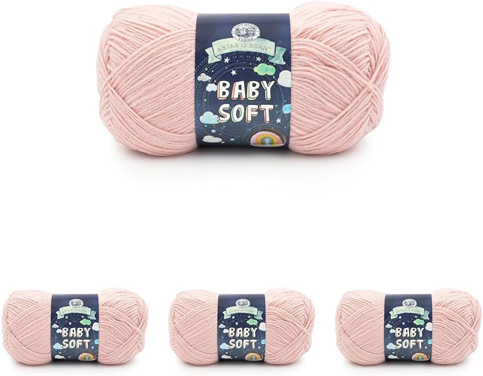 Lion Brand’s Baby Soft Baby Yarn is made from a premium blend that’s ideal for delicate skin and perfect for making supersoft baby blankets, socks, sweaters, and other accessories. This lightweight yarn has a plush texture that handles everyday wear with ease. Whether you’re into knitting or crocheting, you’ll love how it works up into your projects.This yarn is available in multiple pack sizes. Each ball of yarn weighs 5 oz./140 g (solids) or 4 oz./113 g (prints/pomps) and has a length of 459 yd./420 m (solids) or 367 yd./335m (prints/pomps). It is rated CYC #3 light/DK and works with size 6 knitting needles and G-6 crochet hooks. This yarn can be machine-washed and dried.Our mission at Lion Brand Yarn Company is to spread warmth, comfort, and inspiration to the world by providing products and social engagement that promote the joy of knitting, crocheting, and weaving. We offer yarn varieties in unique colors and provide patterns and project ideas to inspire you to express yourself. Whether you’re a new hobbyist, an expert crochet artist, or a seasoned knitting enthusiast, we’re with you every stitch of the way.