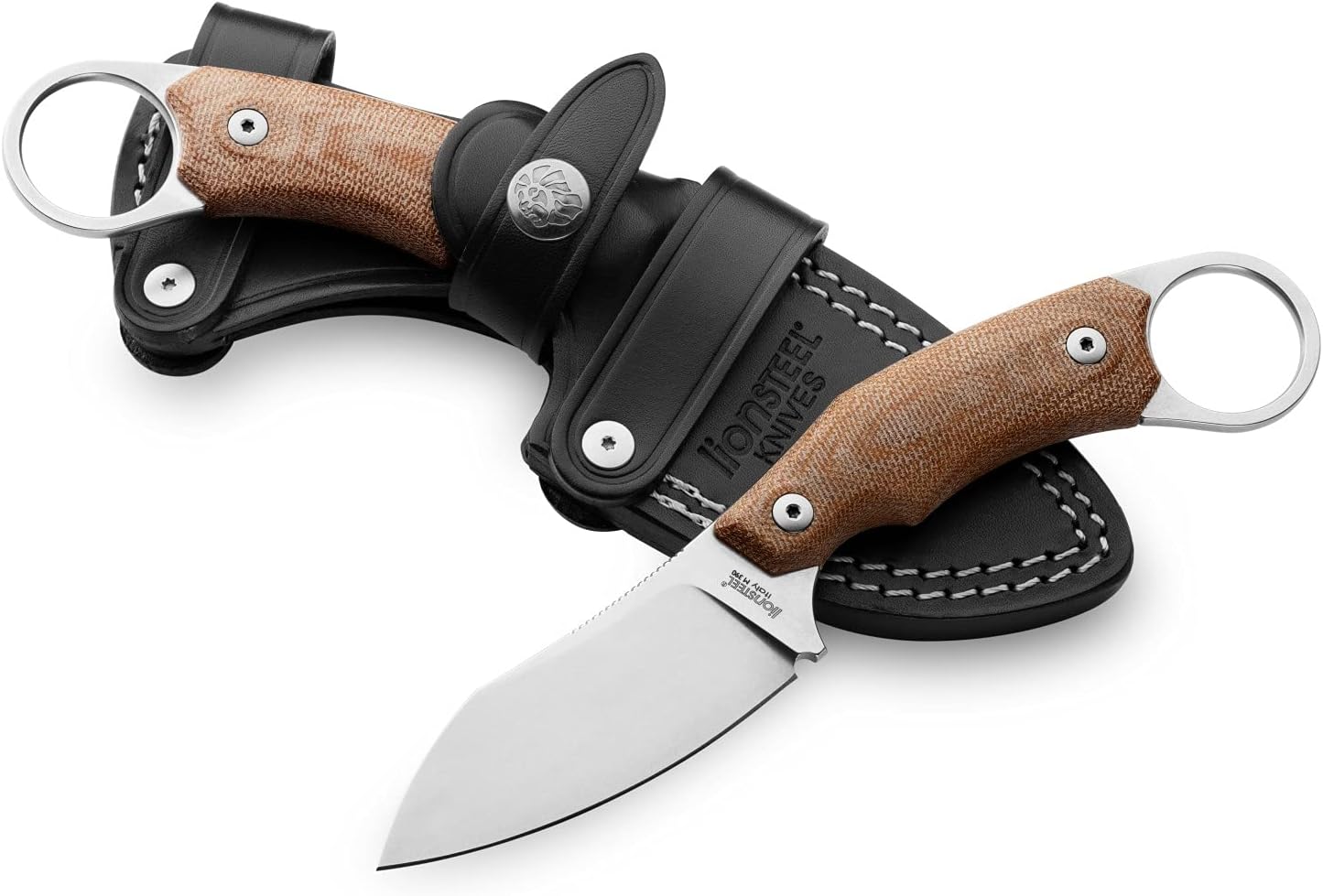 The new H1 and H2 knives, designed by Tommaso Rumici in collaboration with Coltelleria Scintilla, reconsider the karambit as an utility tool, keeping the typical extraction/handling ease and speed of the classic one matching up with blade styles more versatile than the classic hook blade. The H1 and H2 are perfect tools to carry during hiking tours and hunting, even for military purpose as back-up knives, easy to carry on every kind of busy backpack. The designated sheath allows whether vertical or horizontal carry for both knives, also on M.O.L.L.E. systems, in various positions and solutions.