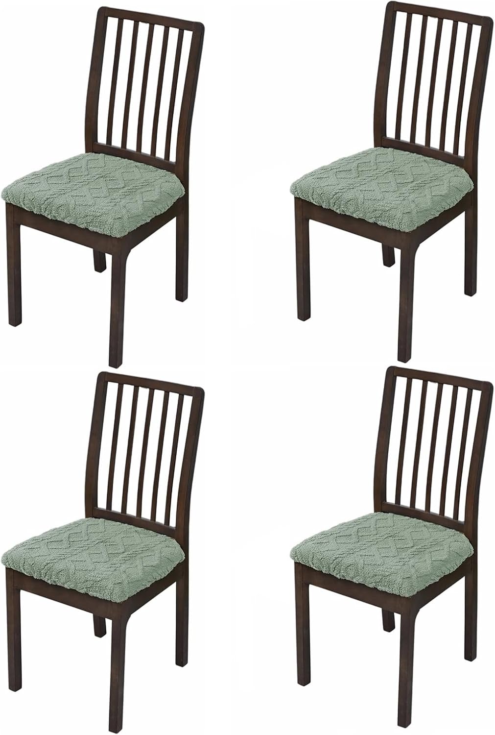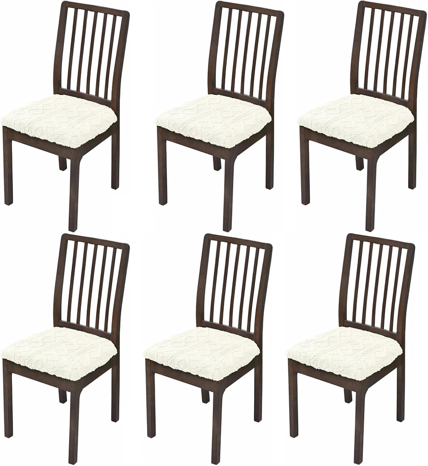 Chair covers are made of fashion rhombic lattice jacquard fabric, soft, comfortable, seat covers for chairs thick enough that safeguard your chairs from pet scratch. High-stretch can fit most chairs easily. Please measure your chair sizes before ordering. Chair seat covers applicable for seat cushion length: 11.8''-17.7''; Seat cushion width: 11.8''-17.7'''; Seat cushion thick: 1.18''-1.77''. Easy to Install: NOT Fit for the chair with arms. Our dining room chair covers with Rear-gapped design to make installation simple and quick. No need to use tools or remove chair cushion, just slip on from chair back, elastic band will secure the seat cover stay in place. Stylish kitchen chair covers not only protect your furniture from spills, stains, wear and daily scratches, but also gave your old broken chair a nice face lift. Stretchable dining chair covers are suitable for upholstered chairs in kitchen, dining room, hotels, restaurant, etc. Care: Machine Washable. Tumble Dry Low. No ironing needed.