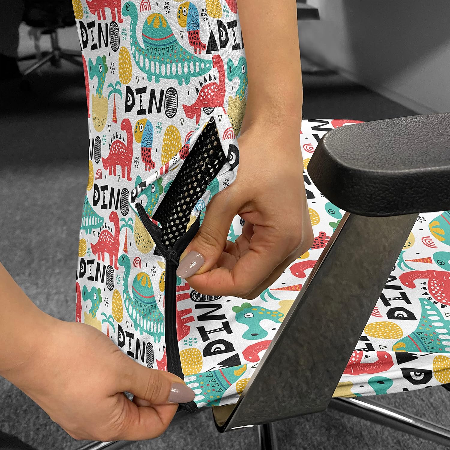 STANDARD SIZE - 2 Piece cover set. Backrest Cover: 13.5" to 17.5". Seat Cushion Cover: 13.5" to 17.5". FEATURES - Easy to install. Has ties to fasten the seat cover. For seat & backing of office chair. MADE FROM - %95 polyester %5 spandex lightweight knit fabric. Stretchable, protective printed cover. MACHINE WASHABLE - On cold cycle, Hang to dry. Soft and breathable, durable cover. No fading. PRINTED - With state of the art digital printing technology. ONLY CHAIR COVER, CHAIR IS NOT INCLUDED Add fun to your office time! Cover tear, rips and tattered edges of your old chair. It's easy to install and remove with smart elastic design. Protective and non-slip cover fits universal standard size office chairs. The material is lightweight, thin but durable. It'll add ultimate style to your gaming chair or studying area. Set assorted modes for every season; summer, Christmas, St Patrick's Day, Valentine's Day, Autumn, Sports Week and any theme you can imagine... Just pick your favorite from our thousands of various patterns. Also, these office chair covers are easy to take care of; machine washable, tumble dry on low. Or just buy one to make your day! This desk chair seat cushion protector adds personality to your space as well as shields from scratches, spills, and accidents. Elastic edges secure the cover quickly. With its stretchable design, it fits square or round seat cushions and backings of simple standard office chairs. These protector covers can be a gift for your co-workers, mother, father, uncle, aunt, son, daughter, boyfriend, girlfriend, husband, wife or simply white-collar worker friends. Before purchasing, please measure your chair size. The digital images we display have the most accurate color possible, however, due to differences in computer monitors, we cannot be responsible for variations in color between the actual product and your screen. ONLY CHAIR COVER, NO CHAIR.