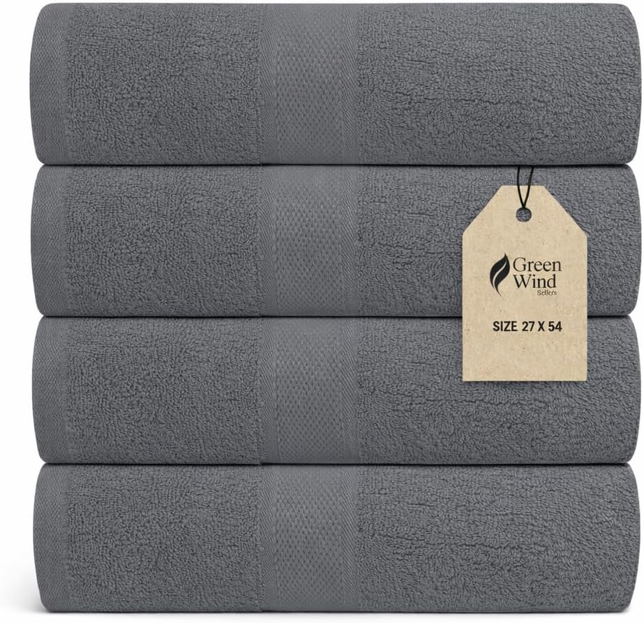 Green Wind Sellers Bath Towels. Indulge in the luxury of our 27x54'' bath towels, available in a pack of four, crafted from 100% cotton to provide superior softness, absorbency, and durability. Perfect for bathrooms, spas, and hotels, these towels offer a spa-like experience at home.