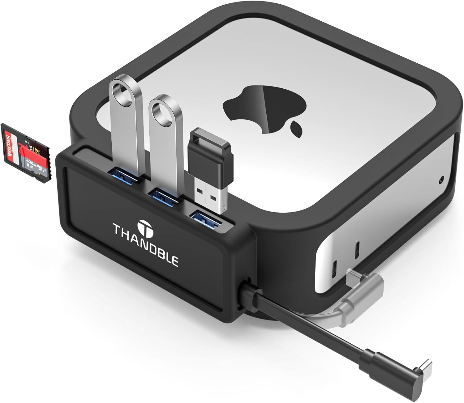 Unleash Your Mac mini M4's Full Potential! THANDBLE 9-in-1 Pro Dock End your port shortage struggle! Instantly transform into a powerhouse workstation: 9 Essential Ports: Dual USB 3.0 (5Gbps) + Dual USB 2.0 (for keyboard/mouse) + SD/TF Card Reader (104MB/s). Handle multitasking & high-speed transfers seamlessly. Dual 4K Ultra HD Output: HDMI + DisplayPort support 4K@60Hz. Perfect for meetings, design, and gaming with multi-resolution compatibility. 8TB Storage Expansion: Built-in M.2 NVMe SSD slot (2280 size). Effortlessly manage 4K editing & massive backups. Pro Design: Precision cooling + Mac-inspired aesthetics. The ultimate efficiency tool for photographers, designers & developers!