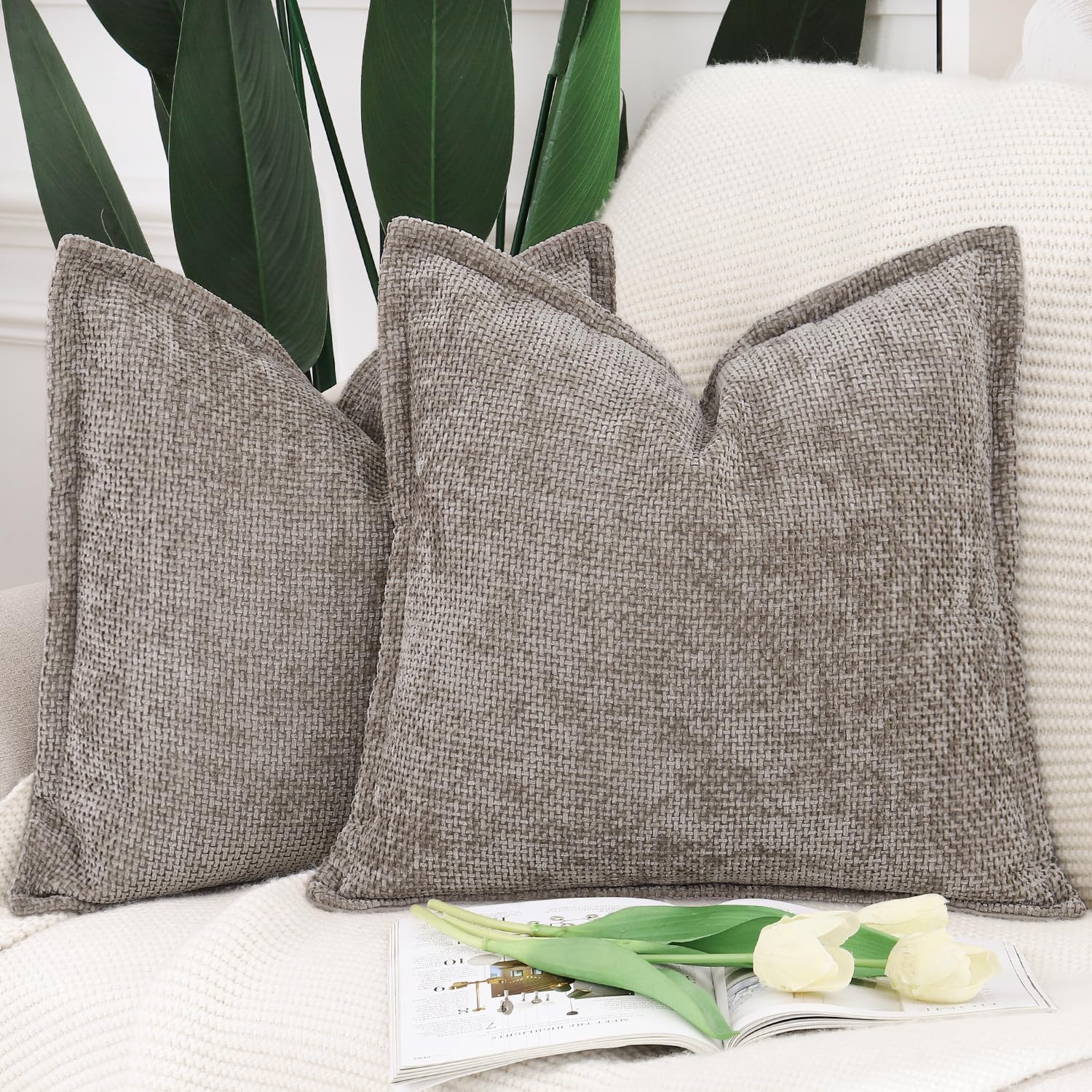 MADIZZ Decorative Chenille Velvet Throw Pillow Covers Set of 2 Soft Boho Textured Neutral Couch Throw Pillow for Bed Modern Farmhouse Home Decor for Sofa Livingroom Burgundy 20x20 Inch
