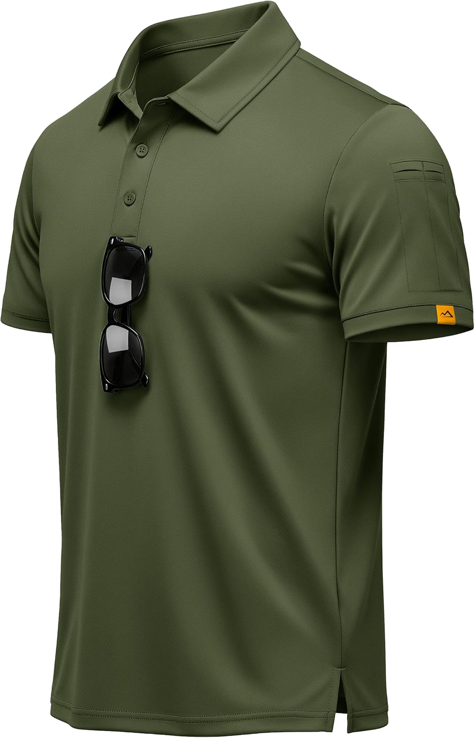 MAGCOMSEN Men's Polo Shirts Short Sleeve Athletic Tactical Casual Golf Shirts Dry Fit Moisture Wicking Collared Shirt Performance Material: Polyester. UPF 50+, dry fit, moisture wicking, breathable, lightweight, cool and comfortable. Design: Golf polo short sleeve collared neck style, ring buckle and sleeve pocket. Occasion: Perfect for golf, fishing, hiking, workout and casual wear.