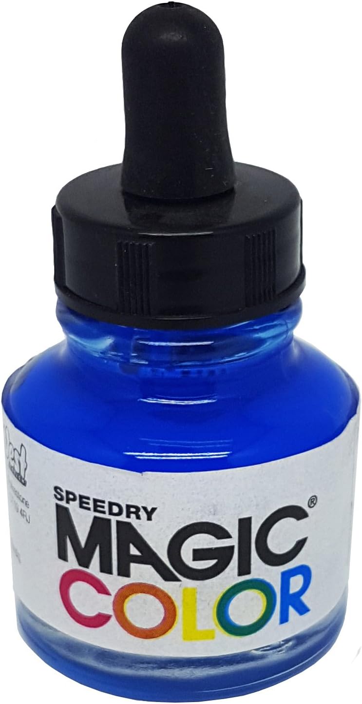 Magic Color lightfast liquid acrylics are made for the most discerning artist and are ideal for airbrush, pen and watercolor effects. An eye-dropper type applicator is integrated into the lid on each bottle for easy application of the exact amount of color the artist needs, and all colors in the range are intermixable. Each color is highly pigmented and can be used direct from the bottle or diluted for pastel-like effects, washes or layering. There are 24 vibrant colors to choose from as well as a dilutant/cleaner. All colors are AP-rated non-toxic and are permanent when dry. Made in the U.K.