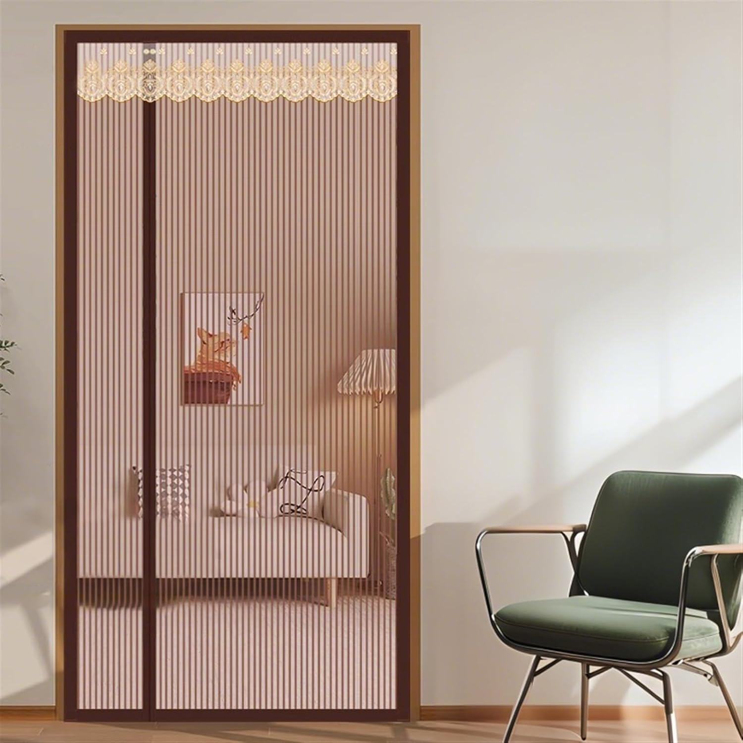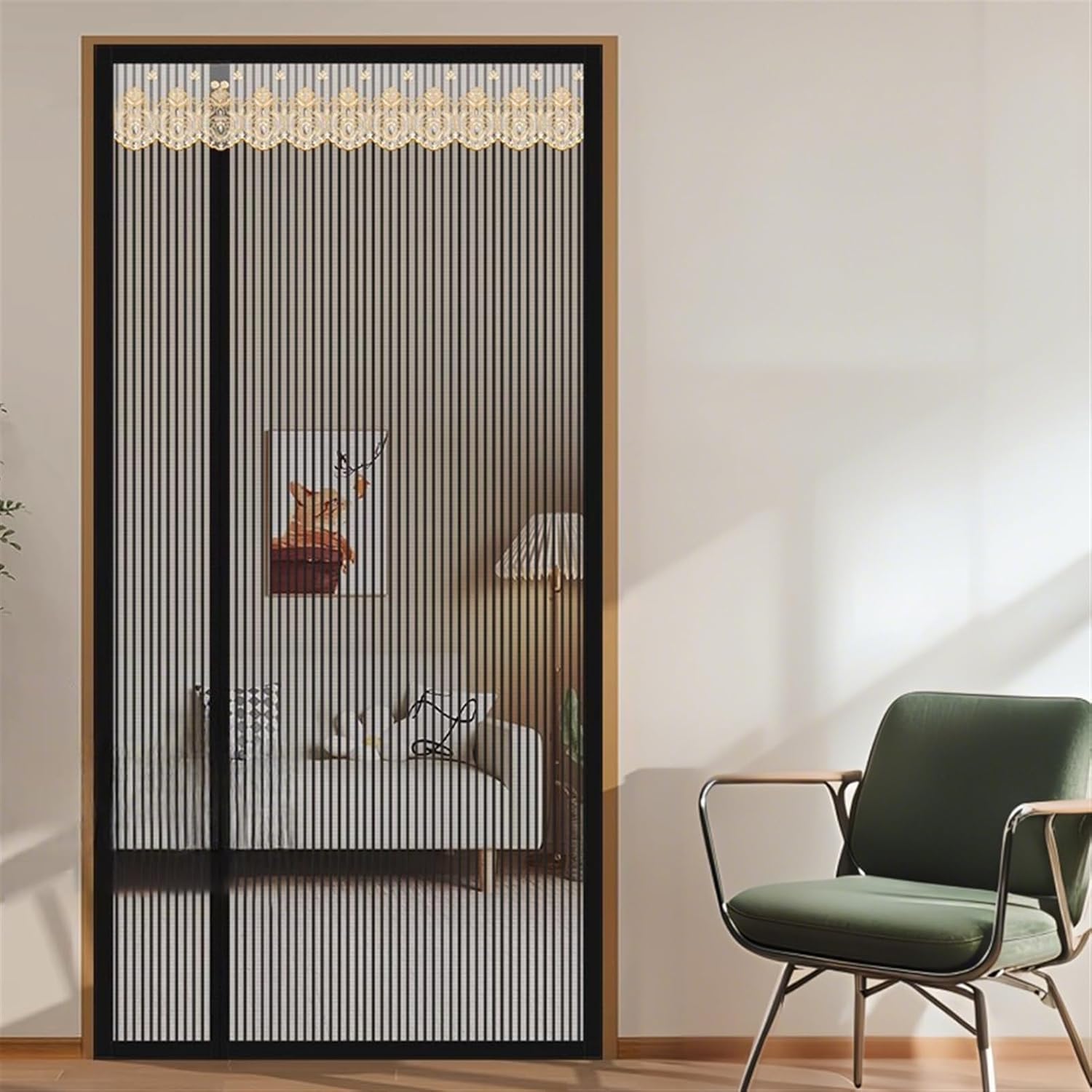 Measure the size of your door frame and clean the door frame before installation. Wait until it is completely dry.2. Lay the screen flat on the floor (consider whether you want to use it as a right or left side opening).3. Attach the supplied hook tape to the top and each two sides of the screen loop part.4. Press hook&loop hard for a few seconds to stick them firmly. Peel off the top white backing paper firstly.5. Stick the screen to the top of the door frame (make sure the top of the opening is slightly higher than the two sides).