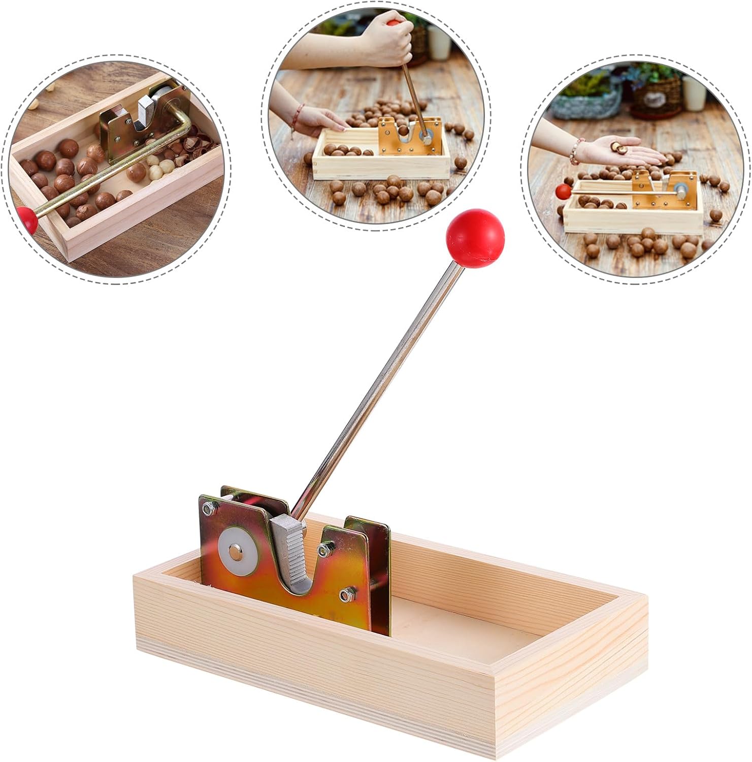 Package Include 1 x Nut Opener Features -Material: Wood & Plastic & Alloy -Size: Approx. 25 x 4.5 cm / 9.82 x 5.5 x 1.77 inch -Product Info:Shell opener -Color:Beige -With a storage area, it can easily and conveniently store nuts and organize your desktop nut cracker plier. -Easy and quick to open all kinds of chestnuts and nuts easily and quickly metal nut opener plier. -Practical and delicate details process it will only open the shell of nuts without damaging its meat tools for opening macadamia nuts. -Our walnut owns the strong wear, rust, deform and break resistance ability nut crackers opener walnut pliers. - material and fine workmanship can its durability and practicability.Goods Informationnutcracker nut opener Based on the principle of leverage, even force, more convenient to use, and the handle is round and delicate, feeling comfortable when hold.Walnuts open Tool It is suitable for a variety of uses, walnuts, chestnuts, hazelnuts and pecans.nutcracker nut tongs This is a practical nut opener which is made by high hardness material, no deformation after long time use