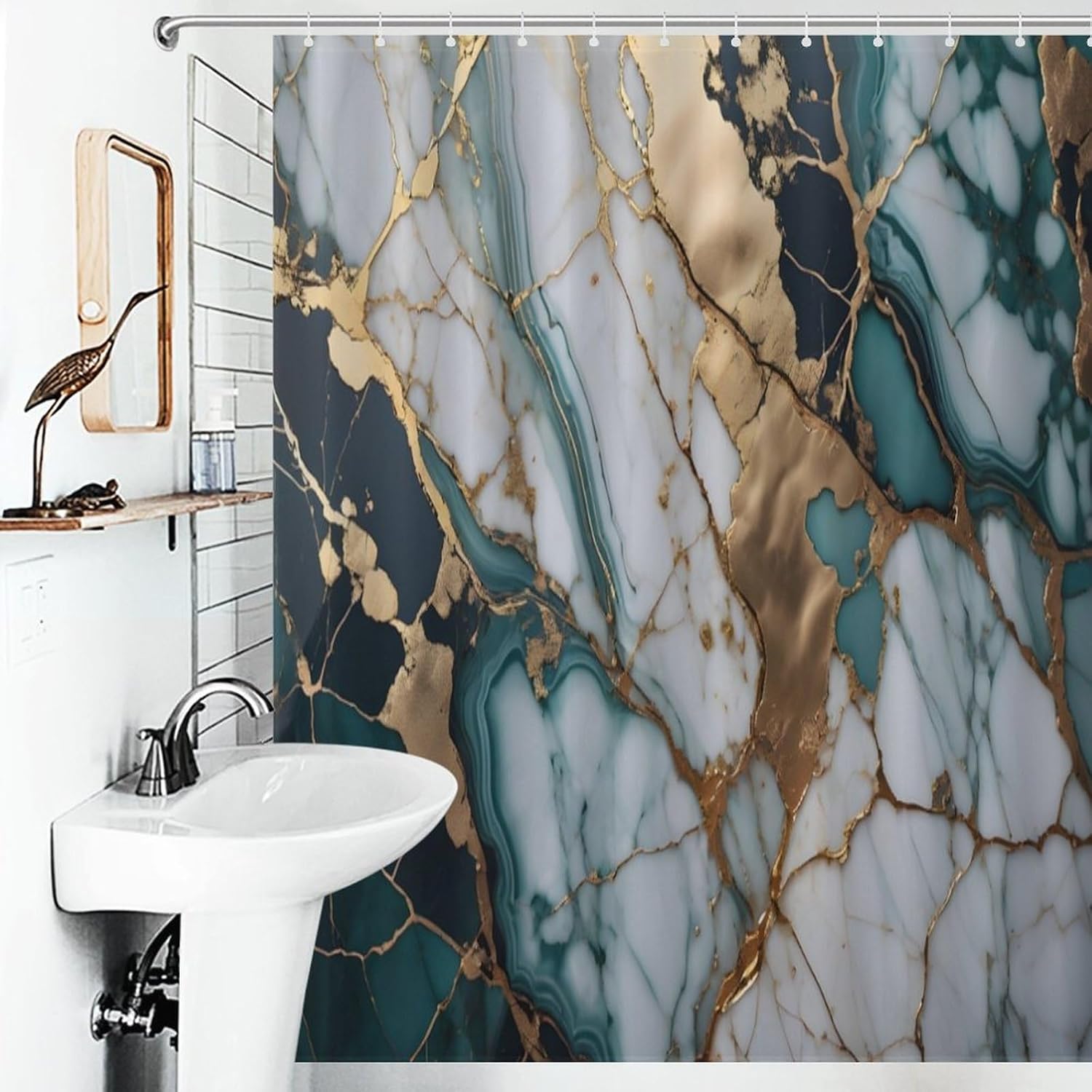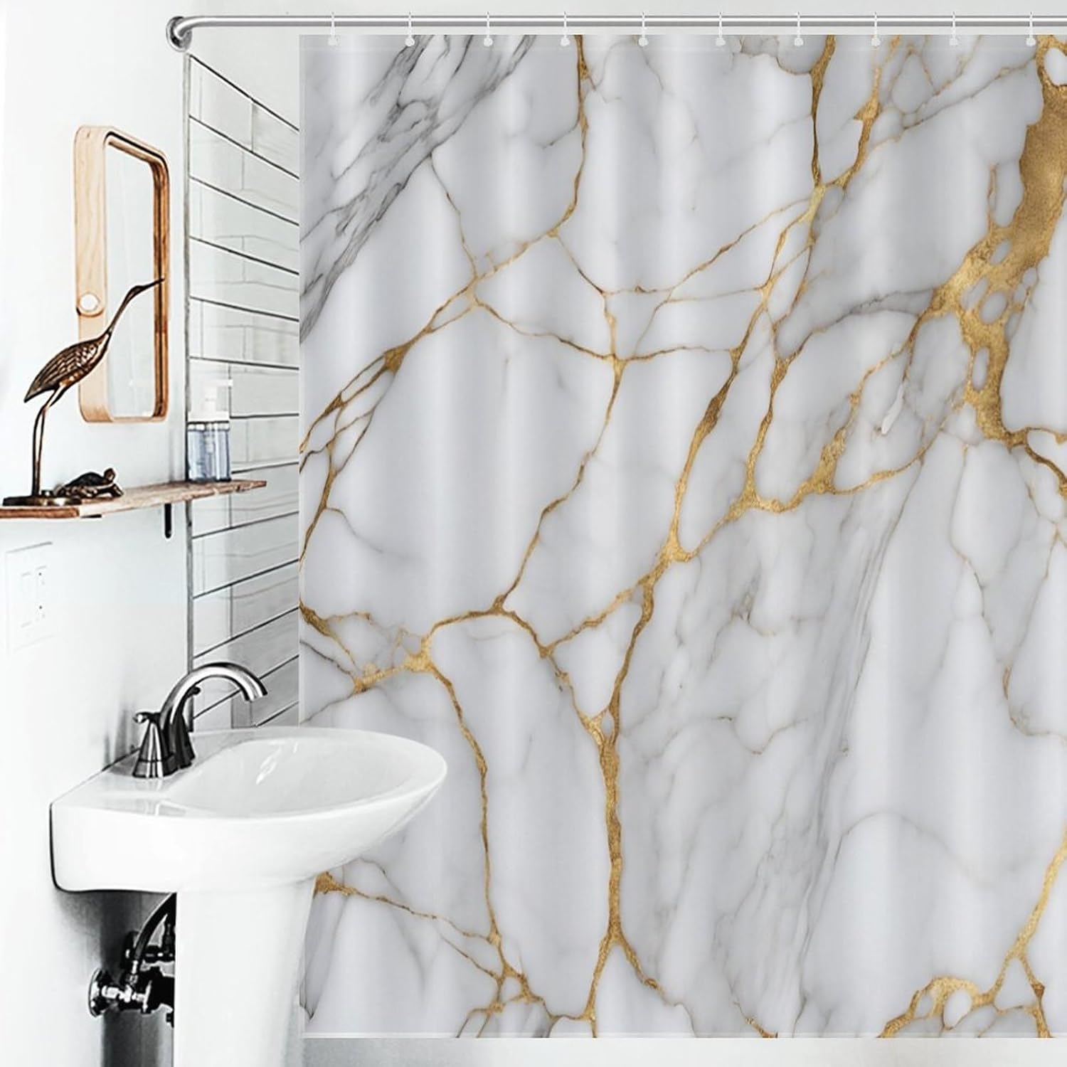 Experience the perfect blend of style and functionality with our premium shower curtain.Crafted from soft, durable polyester, our shower curtain boasts a waterproof effect that keeps your bathroom looking clean and fresh for an extended period.Utilizing advanced HD digital printing technology, the vibrant patterns on our bathroom shower curtain are clear and natural. Rest assured, the use of environmentally friendly ink ensures no odor or harm to your health. Choose from a variety of unique patterns to create a wonderful atmosphere and enhance your overall bathroom experience.Hanging this cute fabric shower curtain is a breeze with the included set of 12 sturdy hooks. For maintenance, simply wash it in cold water by hand or machine—avoid bleach—and enjoy quick drying for added convenience.Each package includes:1 x Unique Shower Curtain12 x Strong HooksPlease note:Allow for slight color differences due to lighting and screen effects.Manual measurements may result in slight variations in product size.