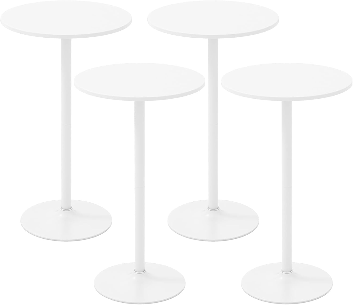 Description:Transform any corner into a chic hotspot with this bar table that switches from 40 inch pub height to 22 inch coffee table in seconds, giving you a sleek cocktail table ready for drinks, games or late night laughs. Enjoy modern minimalism that moves with your mood and never takes up extra space.This round snack table features a 24 inch tabletop and sturdy metal base with non slip ring, so your bar table stays stable and scratch free on any surface. Simply twist the detachable leg to lock in your height, then let the smooth, powder coated cocktail table host beverages, appetizers or décor while its compact footprint blends seamlessly into living rooms, patios or home bars.Features:40" or 22" height for bar or coffee use24" round tabletop holds drinks and decorationSturdy metal base with non-slip ringPowder-coated finish for long-lasting styleMinimalist design blends with any decorationTwist-lock leg for quick assemblyCompact 24" footprint saves spaceEasy-to-clean surface for quick maintenanceSpecifications:Color: Black/WhiteMaterial: MDF, MetalOverall Dimensions: 24" x 40" (Dia x H)Selectable Table Height: 40", 22"Diameter of Base: 18"Max Load Capacity: 120 lbsNet Weight of Each Table: 19 lbsPackage Includes:1/2/4/6 x Bar Tables1/2/3 x User Guides