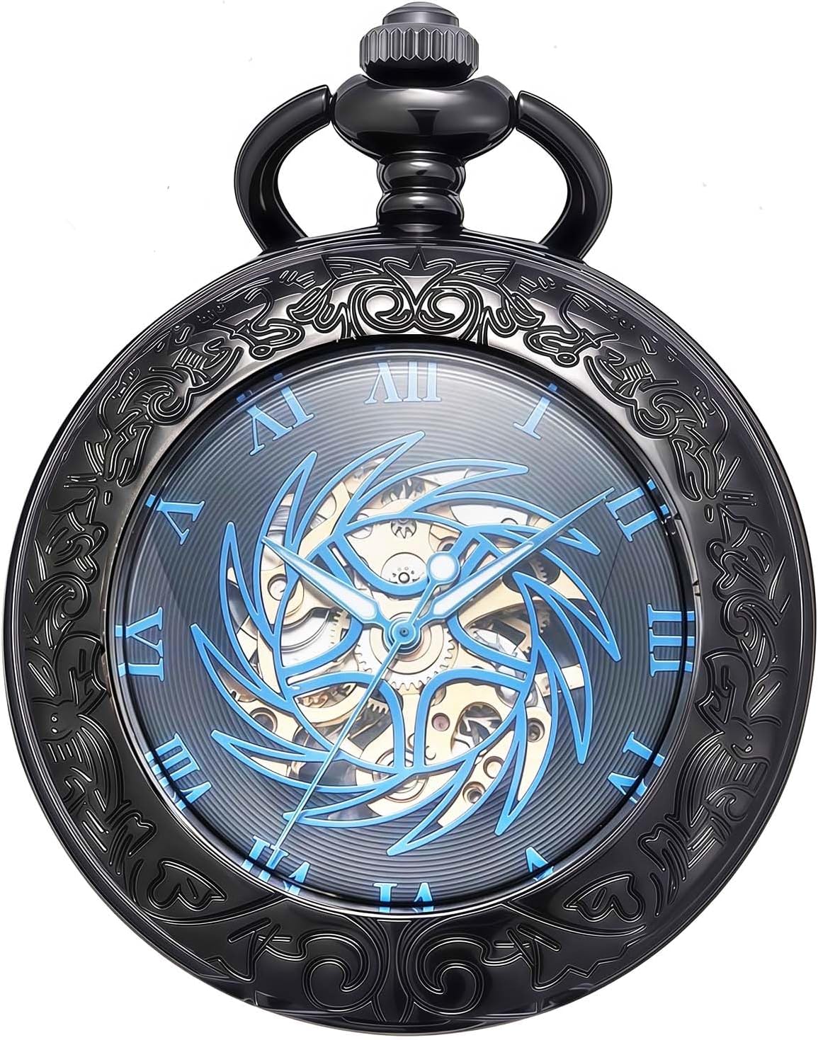 Descreption: SPECIAL DESIGN - Spoondrift Carving, peace and kind. Special skeleton mechanical dial with movement, dial with Roman numerals. Looks very Elegant, Smart, Vintage and fashionable! GOOD QUALITY - New with excellent workmanship, Precise mechanical movement, Elegant case with long chain, Good touch feeling. FASHION ACCESSORY - Comes with a high quality 7mm width Cowboy Chain / Fob. 47mm case diameter. Fit for casual environment and business occasion. Nice addition to a formal or casual dressing or colleting. BATERIES NEEDLESS - Mechanical hand-wound movement, No need to use BATERIES, Twisting the top button on the spin about 20-35 times walk for 24 hours. But please DO notice not to make it too tight. Please wind up the watch before every usage and keep away from magnet to avoid making it stop working. PERFECT CHOICE - Come in with good quality box. Perfect gift for your love and family or yourself, Superb Christmas, Birthday, Wedding, etc. Package included: 1* watch 1* chain 1* gift box