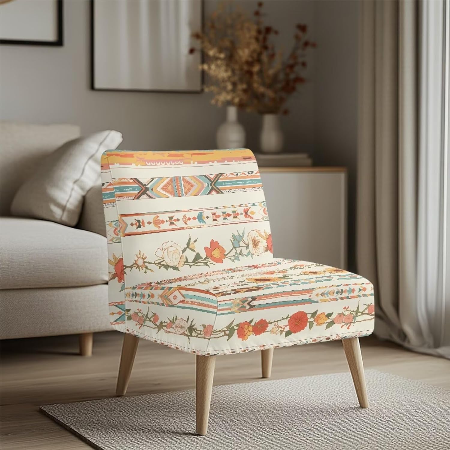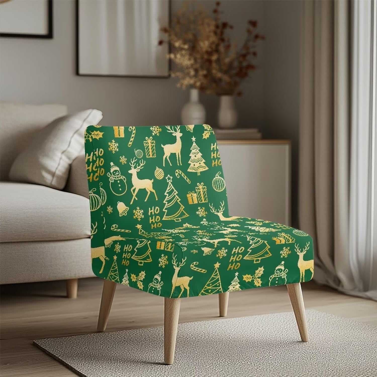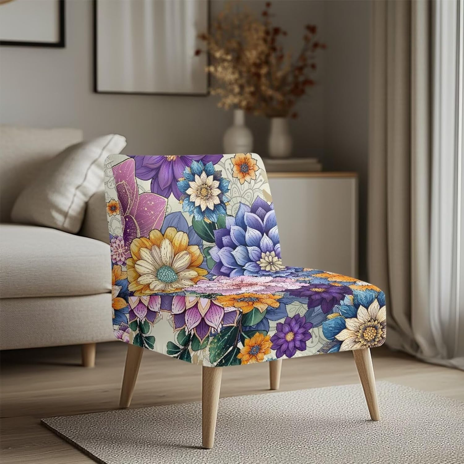 Elastic Accent Chair CoverCover only. Material: Made of Polyester fiber and spandex fabric, which makes the accent chair slipcover elastic and soft. Size : Length 20.98-23.62 in,width 18.26-22.24 in,height 12.99-16.96 in. Suitable for most size armless accent chair. We provide a detailed size chart, please read carefully before purchase. Easy to Use: Our single chair cover without arms is designed with elastic band which makes it easier and more convenient for us to install. It is elastic, non slip, wear-resistant, soft, comfortable, durable and long-lasting. Protect Your Armless Accent Chair: Sofa chair covers can cover stains and dust in daily life, keeping your sofa brand new and clean, reducing damage. Slow down the aging and yellowing speed of your sofa seat surface. Decorate the home, showcase the owner's characteristics, and create exclusive taste. Wide use: Suitable for daily single accent chair protection in bedroom, living room, office, or hotels. The dimensions are measured manually with deviation of 1-3mm.