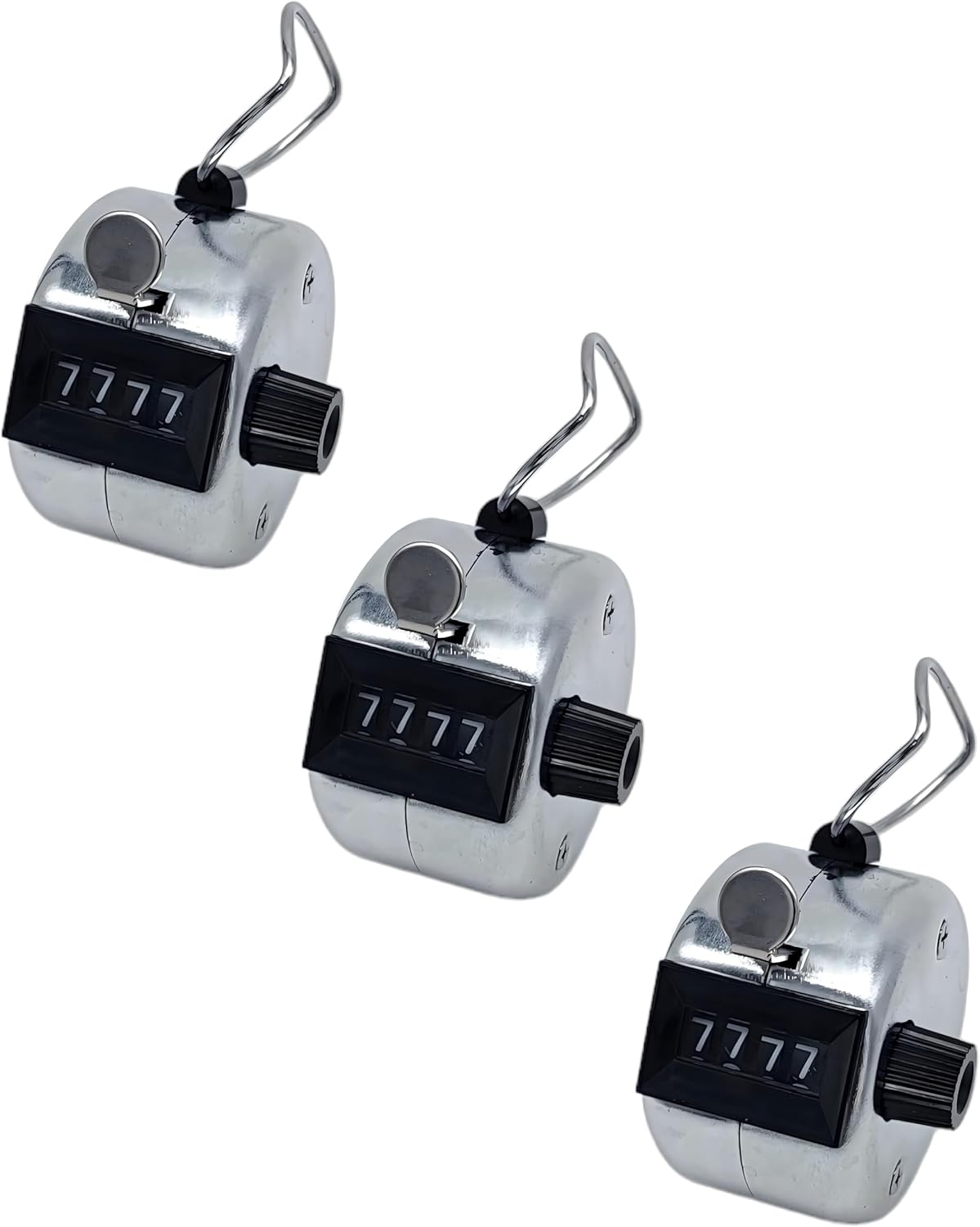 Metal Carnival Counter (4 Digit) Silver Color Manual Hand Held Thumb Operated Tally Clicker Pitch Counter for Counting Knitting Couching Golf Lap Fishing School