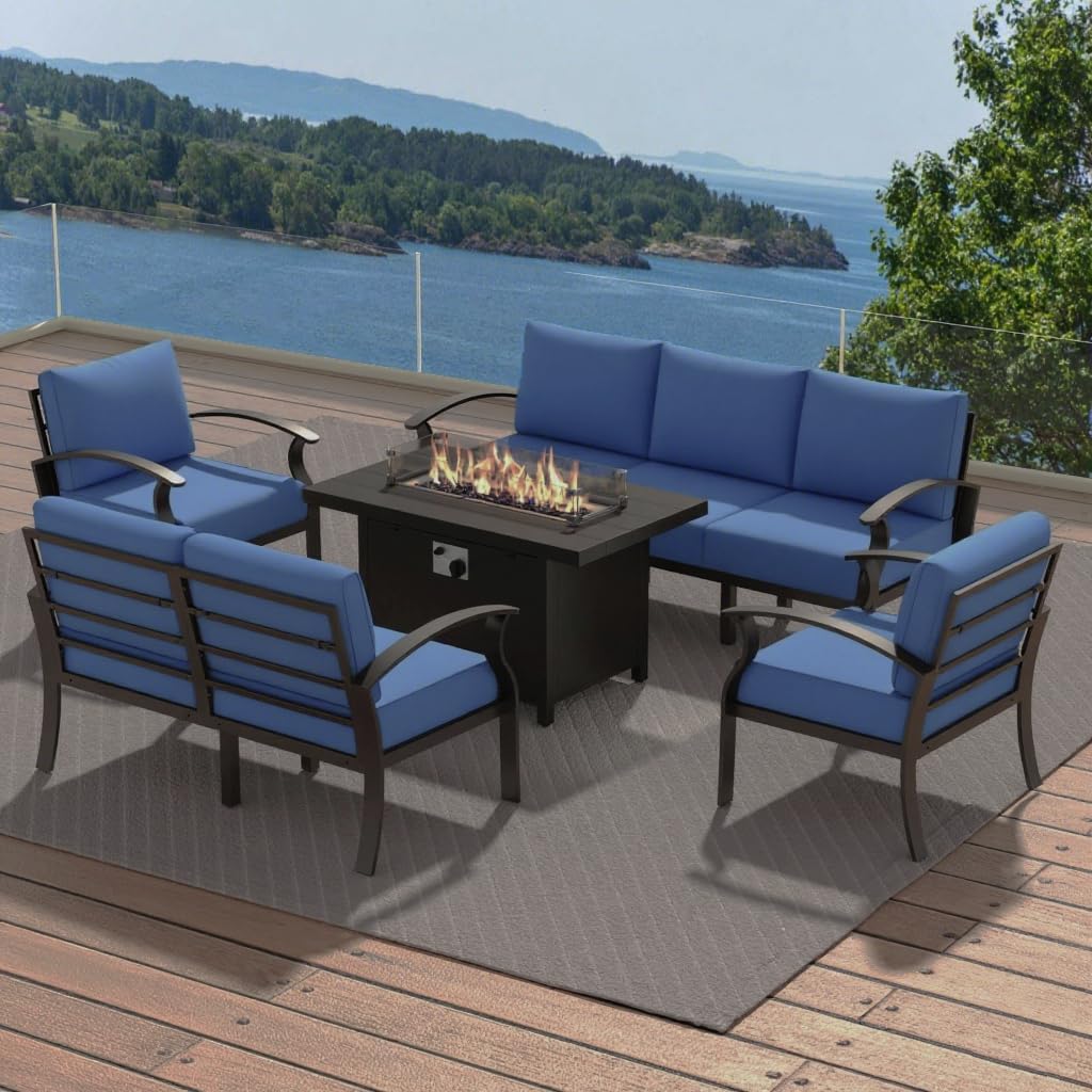 • EXCELLENT COMFORT: The cushions of this outdoor furniture set are designed to be both thick and comfortable, filled with 5 inches of soft and bouncy foam, which makes sitting on them incredibly comfortable and enjoyable. It not only provides excellent support but also great comfort, and its design follows ergonomic principles to perfectly fit the body's natural curves