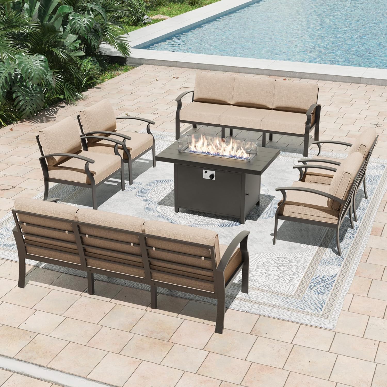• ALL ALUMINUM FRAME:This outdoor aluminum sofa set is made of powder coated thickened heavy-duty all-aluminum frame, the frame is lightweight and solid, providing extra stability. The surface is powder coated for extra stability and durability; it is waterproof, UV resistant, and rustproof, so you can feel comfortable leaving this set outdoors no matter what the season