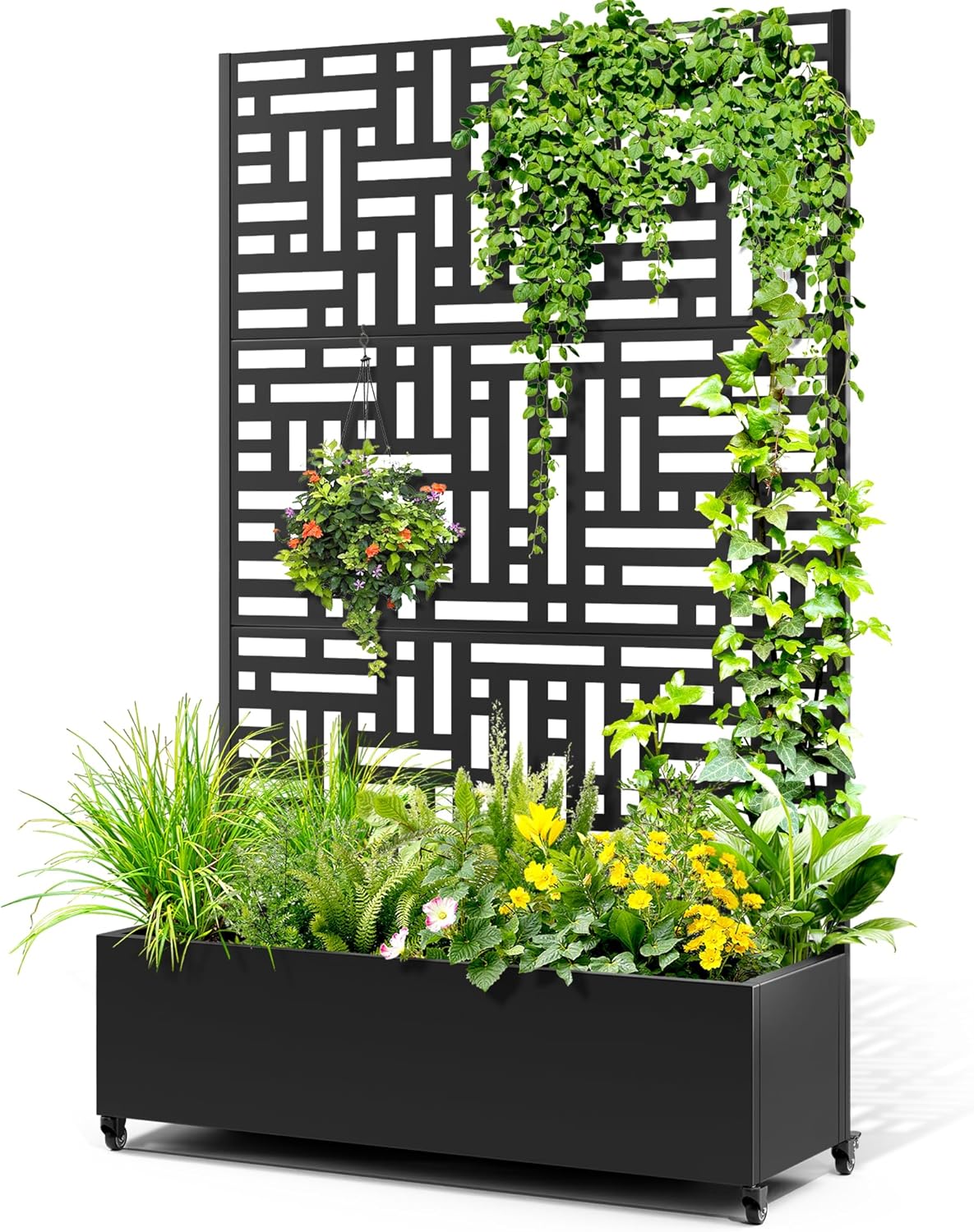 Product Name: Metal Raised Garden Bed with Trellis, 2 in 1 Trellis with Planter Box & Privacy Screen for Climbing Plants, VineMaterial Composition: Galvanized steel, weather-resistantColor Selection: Black / White🌱 Key Features:2-in-1 Design: Combines a deep metal planter with a vertical trellis—perfect for growing climbing plants like cucumbers, beans, vines, roses, or morning glories.Built-In Trellis & Privacy Screen: The tall trellis offers strong support for vertical growth while also acting as a decorative privacy screen on patios, balconies, or garden corners.Durable Metal Construction: Made from rust-resistant, powder-coated steel for long-lasting durability in all weather conditions.Efficient Drainage System: Multiple drainage holes at the bottom prevent waterlogging, keeping plant roots healthy and promoting vigorous growth.Space-Saving Vertical Gardening: Ideal for small spaces like balconies, patios, decks, or urban gardens—maximize growing space without sacrificing floor area.🏡 Perfect For:Climbing vegetables like tomatoes, cucumbers, and beansFlowering vines and ornamental plantsAdding privacy or shade to outdoor seating areasUrban gardening, patios, decks, and balconiesUsage InstructionsBefore First Use:Unpack all items and confirm all accessories are included. Check for any transport damage.Step-by-Step Installation:• Assemble the planter box and trellis according to the instructions.• Fill the planter box with soil or your choice of potting mix.• Plant your desired climbing plants or vegetables.• Guide the plants to grow up the trellis for support.• Water and maintain regularly to ensure healthy growth.Why Choose UsWe believe outdoor spaces should be beautiful, functional, and personal. That’s why we craft our metal planter box with trellis using premium-grade galvanized steel, finished with a UV- and corrosion-resistant powder coating to ensure long-lasting durability, safety, and reliable performance in any environment.Inspired by modern minimalism and the elegance of climbing greenery, this planter-and-trellis combo adds a stylish, contemporary touch to gardens, patios, balconies, and even indoor areas. Whether you're growing vines, flowers, or vegetables, the garden bed with trellis’ the perfect blend of structure and style—ideal for plant lovers who value both aesthetics and practical support for vertical growth.