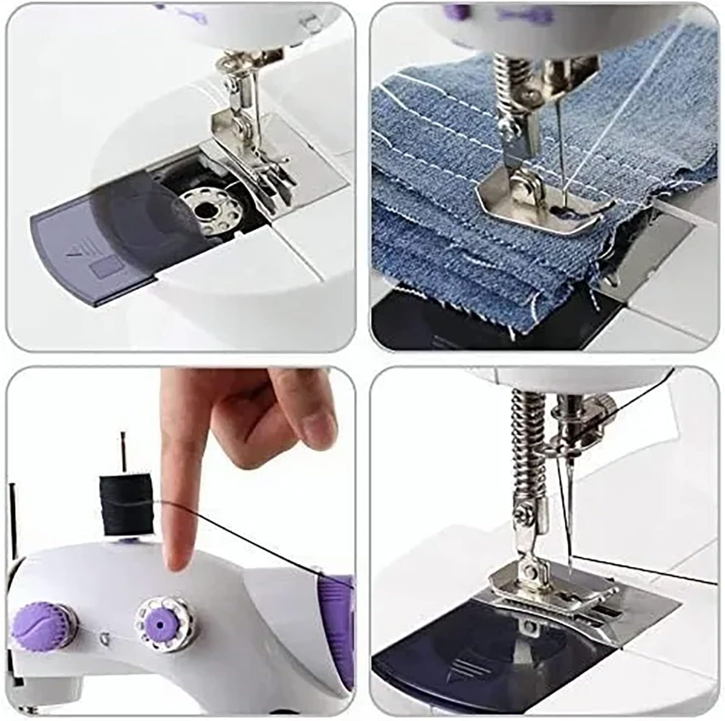 Features: 1. Mini Size: This kids sewing machine is mini in size and light in weight, ideal , beginners and novice to sew some daily little projects. 2. Multi Function: This kids sewing machine features thread cutting and winding, it can be used to DIY a beautiful clothes, suitable for many materials such as silk, nylon, cotton, leather and so on. 3. LED Light: This small sewing machine is designed with LED light to help you see more clearly, which can reduce the damage to eyes. 4. Material: This crafting mending machine is made of ABS and material, which is strong and . 5. Gift: This household sewing machine with simple structure is choice for gifting on Children's Day, birthday, Mother's Day, Valentine's Day, Thanksgiving, Christmas. Specification: Item Type: Mini Sewing Machine(110v) Material: ABS Plastic, Stainless Steel Product Use: Household Application Scope: Most Scenarios Batteries: 4 x AA Batteries (Batteries Not Included) Package List: 1 x Mini Sewing Machine 1 x User Manual 1 x Adapter 1 x Pedal 1 x Threader 2 x Bobbin with Wire 2 x Empty Bobbin 1 x Needle