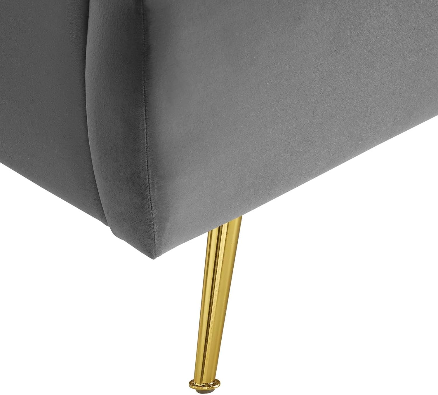 Update your master bedroom or guest suite with comfortable sleep and elegant style with the Lana Performance Velvet Queen Platform Bed. A modern twist on a classic wingback tufted bed, the queen headboard of this platform bed features beautiful channel tufting with an arching scalloped design. The queen headboard and siderails of this wingback bed are upholstered in soft, stain-resistant performance velvet and feature dense foam padding that offers comfort and support while relaxing in bed. Resting atop gold metal legs, this vintage modern bed comes with a sturdy wood slat support system with a reinforced center beam that eliminates the need for a box spring. Abounding in glam deco style, Lana is a luxurious mattress foundation that promotes healthy air circulation for memory foam, innerspring, latex, and hybrid mattresses.