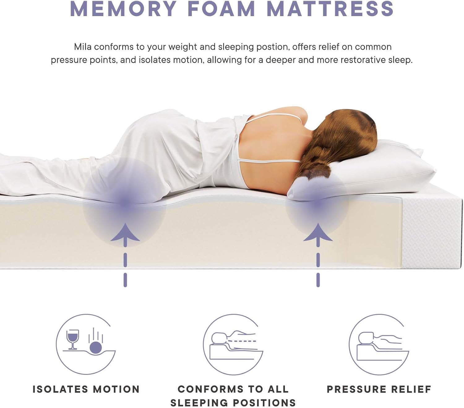 Enjoy a peaceful night's sleep with the Mila 12” Memory Foam Mattress. This twin size mattress combines a layer of memory foam that relieves pressure points with a thick layer of responsive foam underneath that conforms to your weight and sleeping position. Featuring CertiPUR-US certified memory foam and a breathable stretch knit cover, this mattress is designed to support a more restful night. Mila ships compressed and rolled into a convenient box and is delivered directly to your doorstep. The perfect solution for the kid's bedroom, college dorm, or guest room, this twin mattress meets fire-resistant standards and comes with a 10 year warranty.