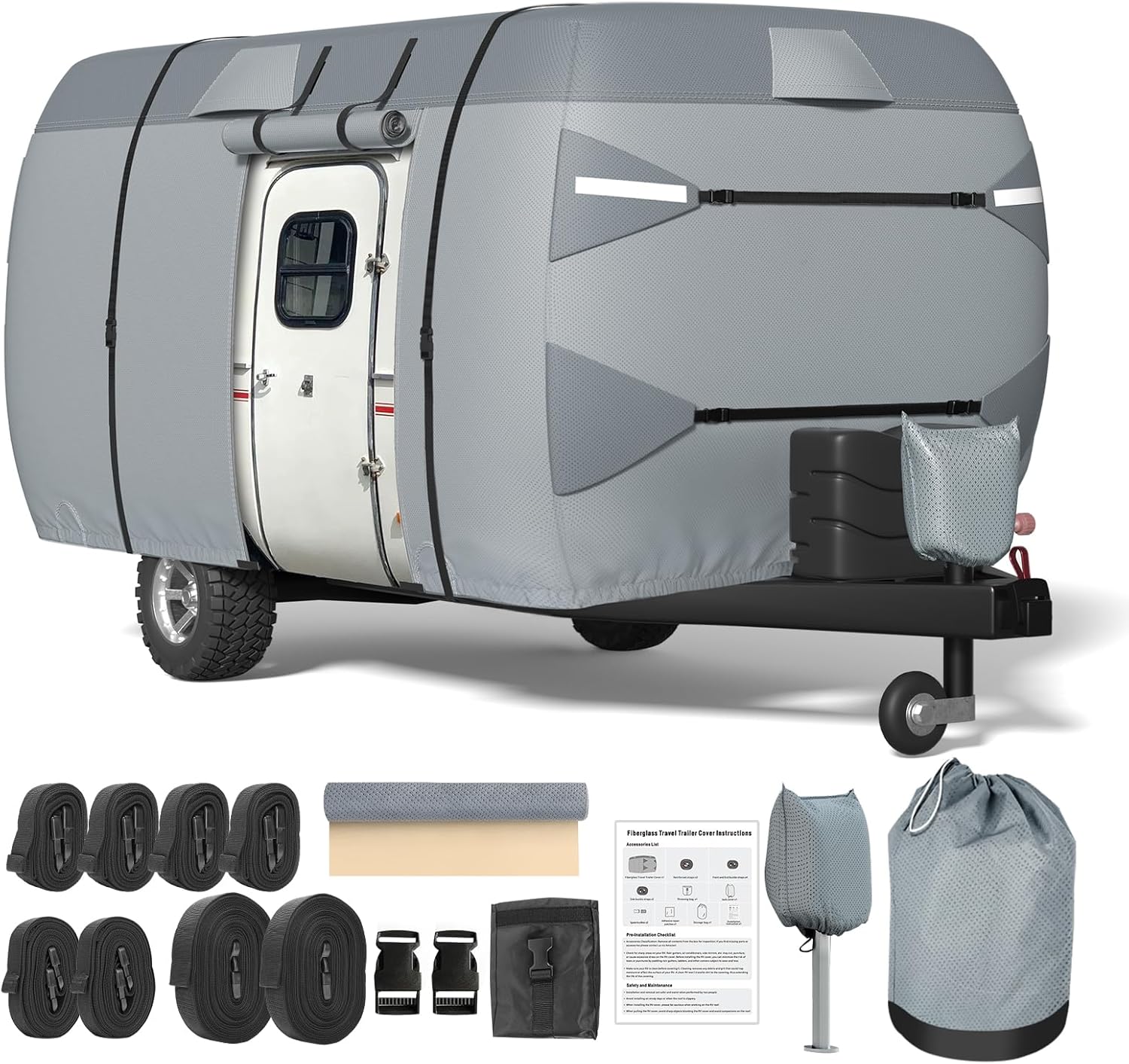 | Included Components | 5th Wheel RV Cover *1 Tire covers *4 Extra long strap *1 Reinforced straps *2 Side buckle straps *7 Front and End buckle straps *6 Gutter covers *6 Adhesive repair patches *1 Toss Bag *1 Storage Bag *1 Installation Instructions *1 |