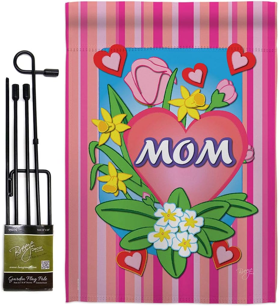 Mother's Day Beautiful Mini Garden Flag with Metal Garden Banner Pole Stand - Complete Set with Fansy Wall Bracket - 12" x 16" Power Coated Metal Flag HolderBreeze Decor have variety of Garden Flag Set for all occasions. Uniquely design for hanging indoor or outdoor use. We are committed to offering you exceptional values. Our customers enjoy displaying our Garden Flag Set for longer periods. Specification: Theme: Mother's Day Size: Garden Flag Set 13" x 18.5" Size: Metal Fansy Wall Bracket Print: Double-Sided Readable: Readable Single Side Material: Weather Resistant Polyester 300 D Stitching: Double Stitched Display: Vertical Hang Type: Sleeve Artist: Schal Lee Special Features: Origin: Made In USAPackage Include: 1 pc x Mini Garden Flag 13" x 18.5" 1 pc x Metal Yard Banner HardwareFor more than a decade, we’ve been dedicated to manufacturing flags with no comparison in quality and beautiful designs. Our flags are made with our Pro Guard material that is soft to the touch and designs can be read correctly on the flag. A feature that our customers will love. We are committed to using eco-friendly inks that won’t leave a foot print in our environment. MPN: BD-MD-GS-115078-IP-P3-03-S-US12-BD 15078 65078