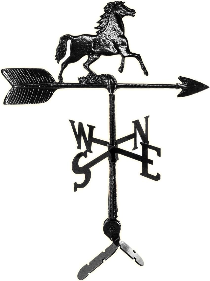 Complete the look of your cottage or your country style home with a Montague Metal Products weathervane. This traditional style weathervane is hand cast in rust free aluminum for durability and maximum strength. The weathervane can be used on a 24″-30″ cupola, two car garage or medium size home. The weathervane is placed on an arrow and followed by North, South, East and West directionals.