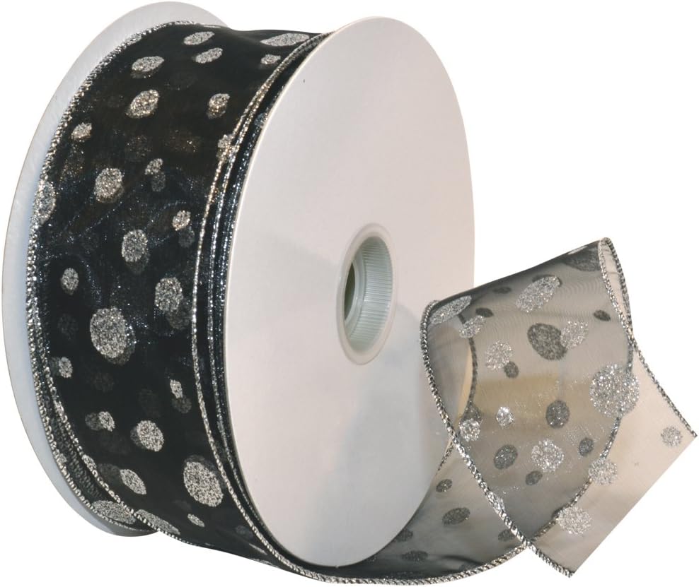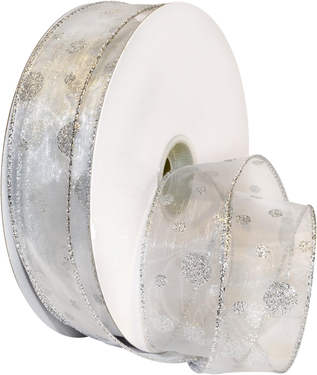 Morex Ribbon Glitter Dots Wired Sheer Glitter Ribbon, 2-1/2-Inch by 50-Yard Spool, Silver