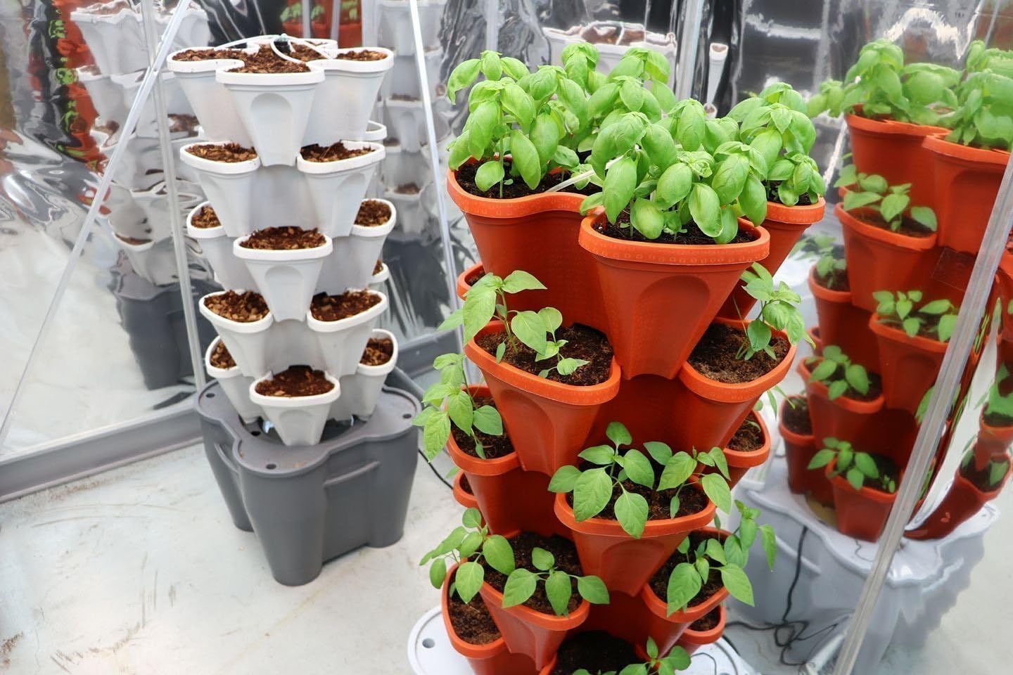 Smart Farm by Mr Stacky Change Your Lifestyle Grow Healthy, Nutrient-Rich Food Easier, Faster, and More Convenient Then Ever Before Set Timer To Water Automatic Daily (Simple) Go On Vacation And Come Back To A Thriving Garden. 16 Gallon Tank Lasts 2-3 Weeks. (Convenience) Recirculates Water Back Into The Tank Saving 85% Water Compared To Traditional Gardening (Eco Friendly) Operate a Large 20 Plant Veggie Garden in a 18.5" x 18.5" Food Print (Space Saving) Pots Rotate Around The Center Pipe. Makes it Easy To Rotate Into The Sun If Garden Is In A Corner. (Smart) Take Control Of Where Your Food Comes From and How It's Grown Hydroponics: Hydroponics sounds a lot more complicated then it actually is. Anyone including "brown thumbs" can do it. Hydroponics just means we are add plant food to the water and we use a different growing medium to replace soil. This allows us to know exactly what we are feeding our plants and providing only what our plant needs. By growing hydroponically we can grow larger veggies faster in a smaller footprint and conserve water all at the same time. How awesome is that? Yes you can grow in soil too but hydroponics is recommended. We promise it's not hard and we are always here to help customers. You can even grow rooted plants such as Beets in the Smart Farm. What Can I Grow Hydroponically?: Here is a list below to give you ideas: Cucumbers Bell Peppers Butternut Squash Beets Green Beans Snap Peas Tomatoes Watermelon Zucchini Herbs Strawberries All Kinds Of Leafy Greens And On and On and On How Do I Start?: Start By Filling Up The 16 Gallon Tank With Water Add 2 Tsp of Plant Food (Included) Per Gallon of Water Fill Each Pot With Growing Medium of Your Choice (75 % Coco Peat / 25% Perlite)(Recommended) Plant Each Pot (Start With Seeds or Plants) Set Timer and Plug In Pump. We Believe That Growing Food At Home Not Only Provides A Healthier Life But A Happier One!